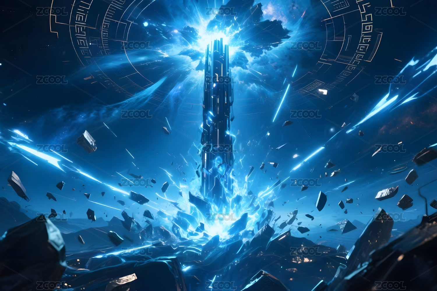 超现实科技几何体光束场景