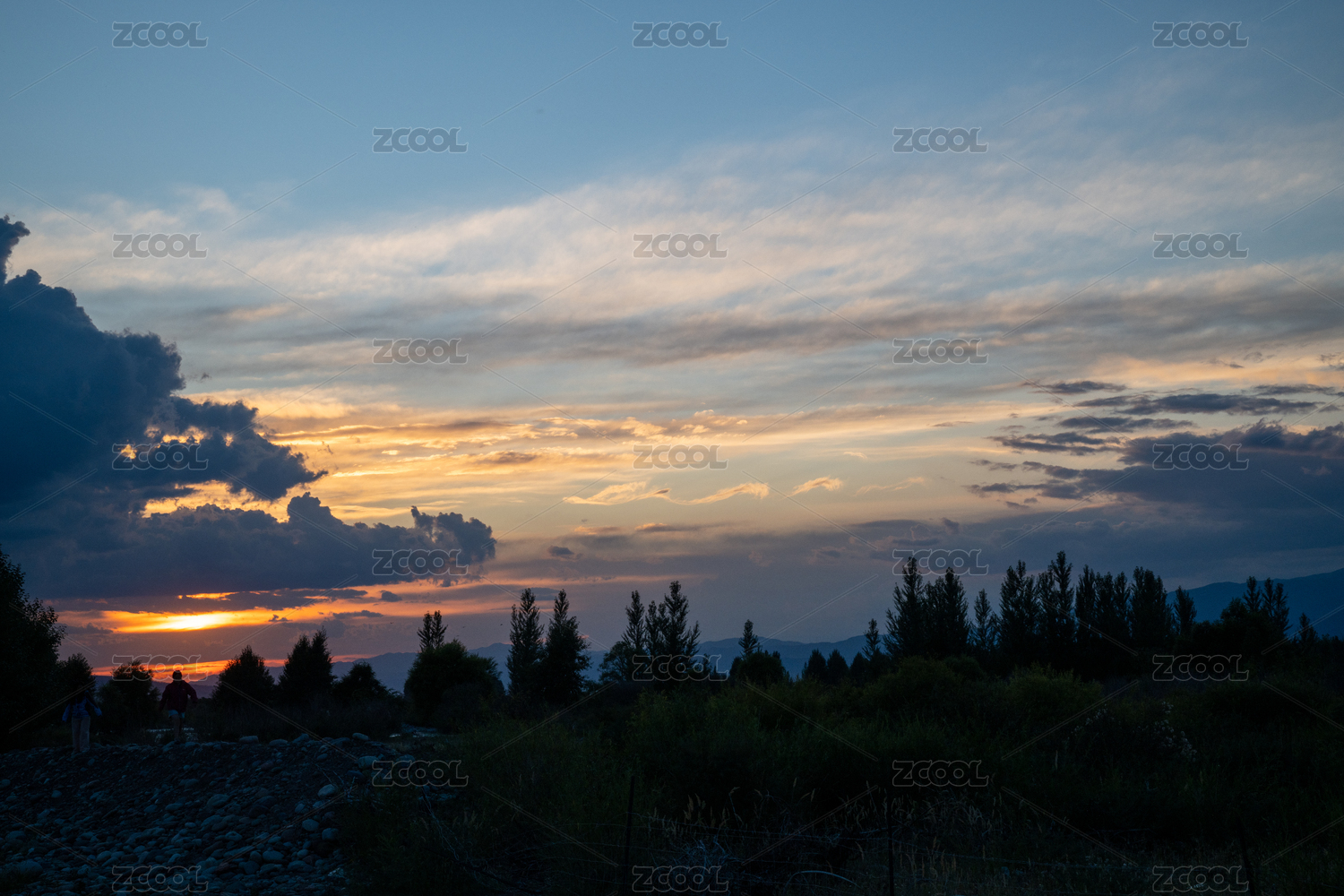 中国新疆伊犁哈萨克自治州那拉提镇的日落