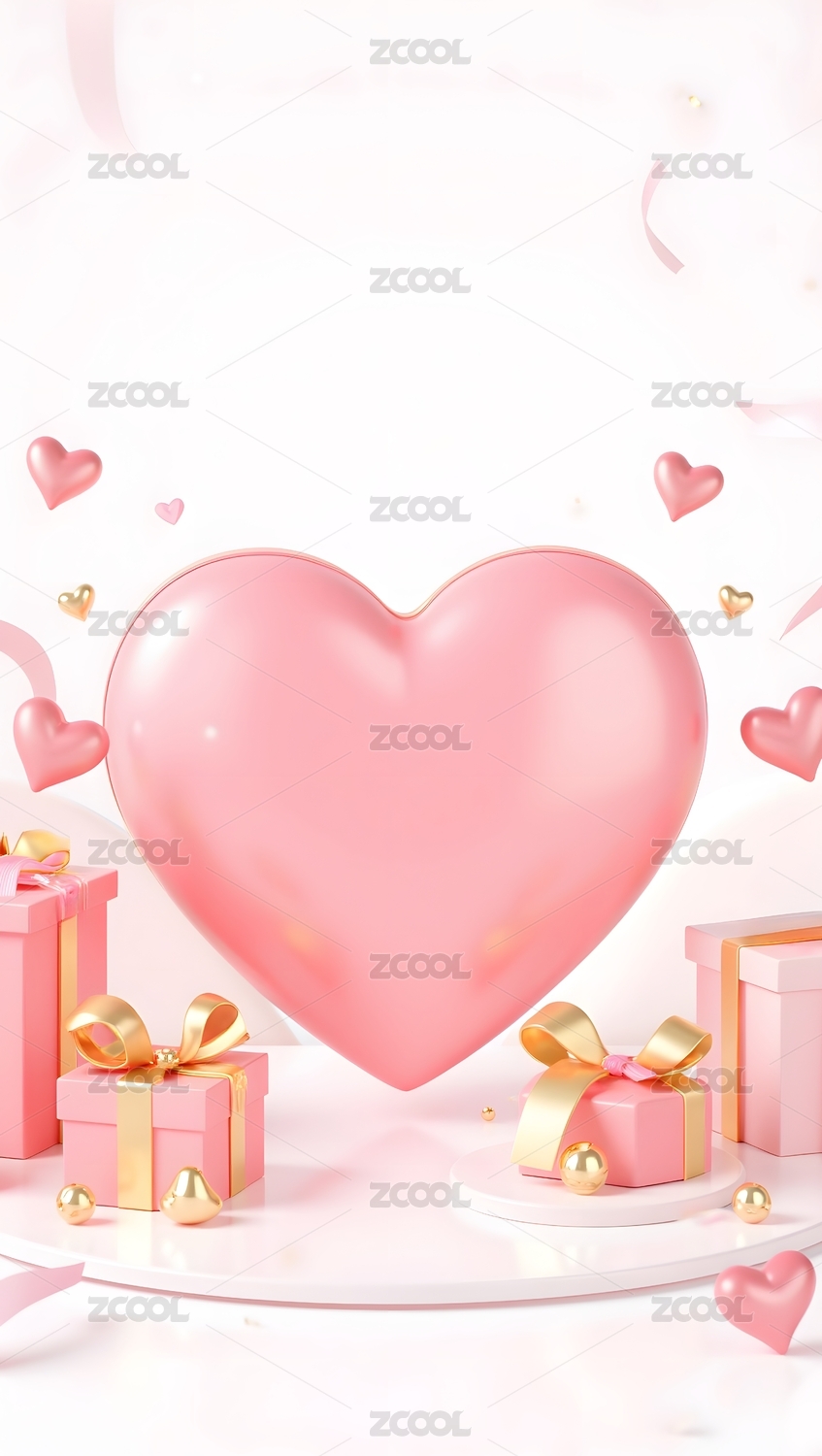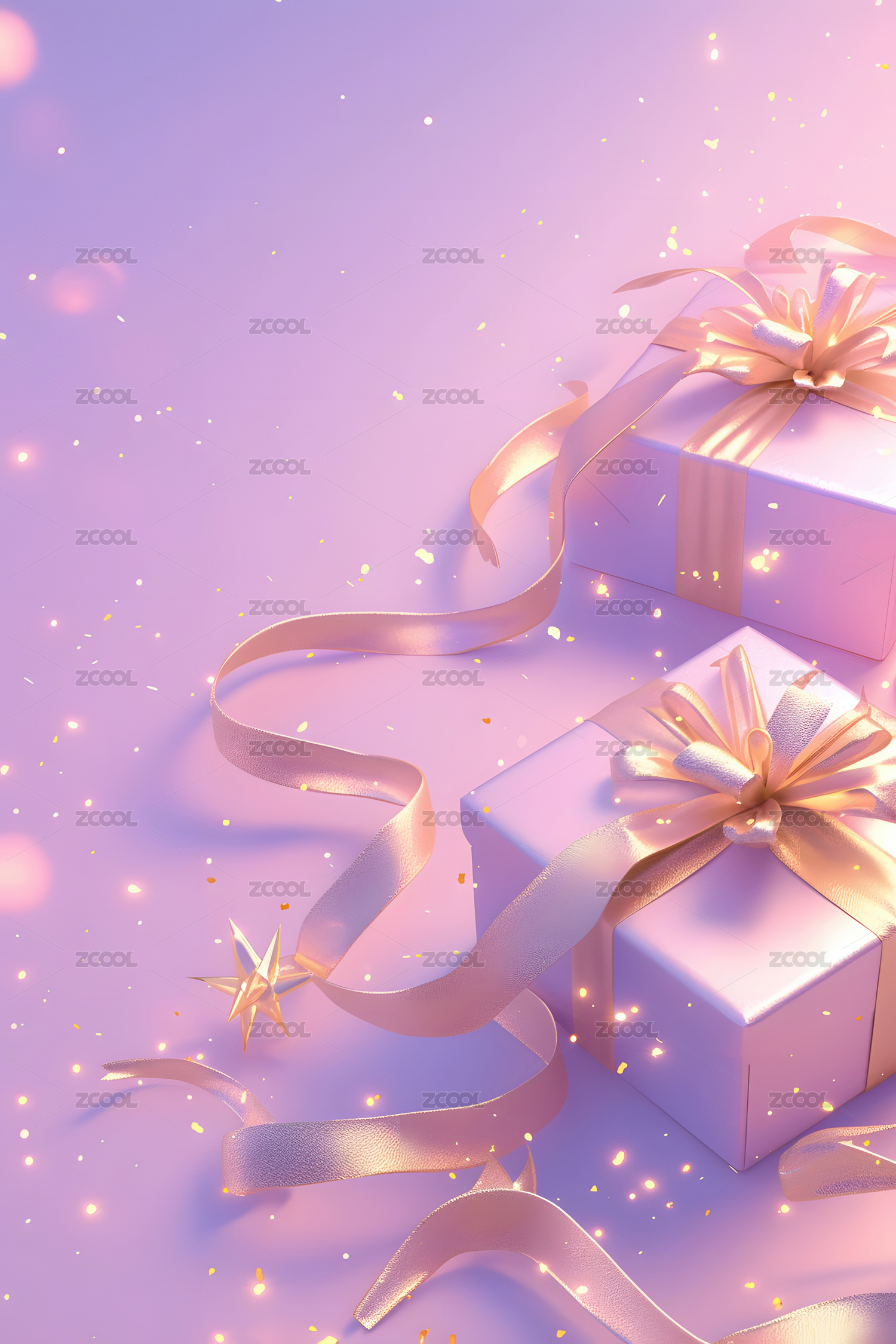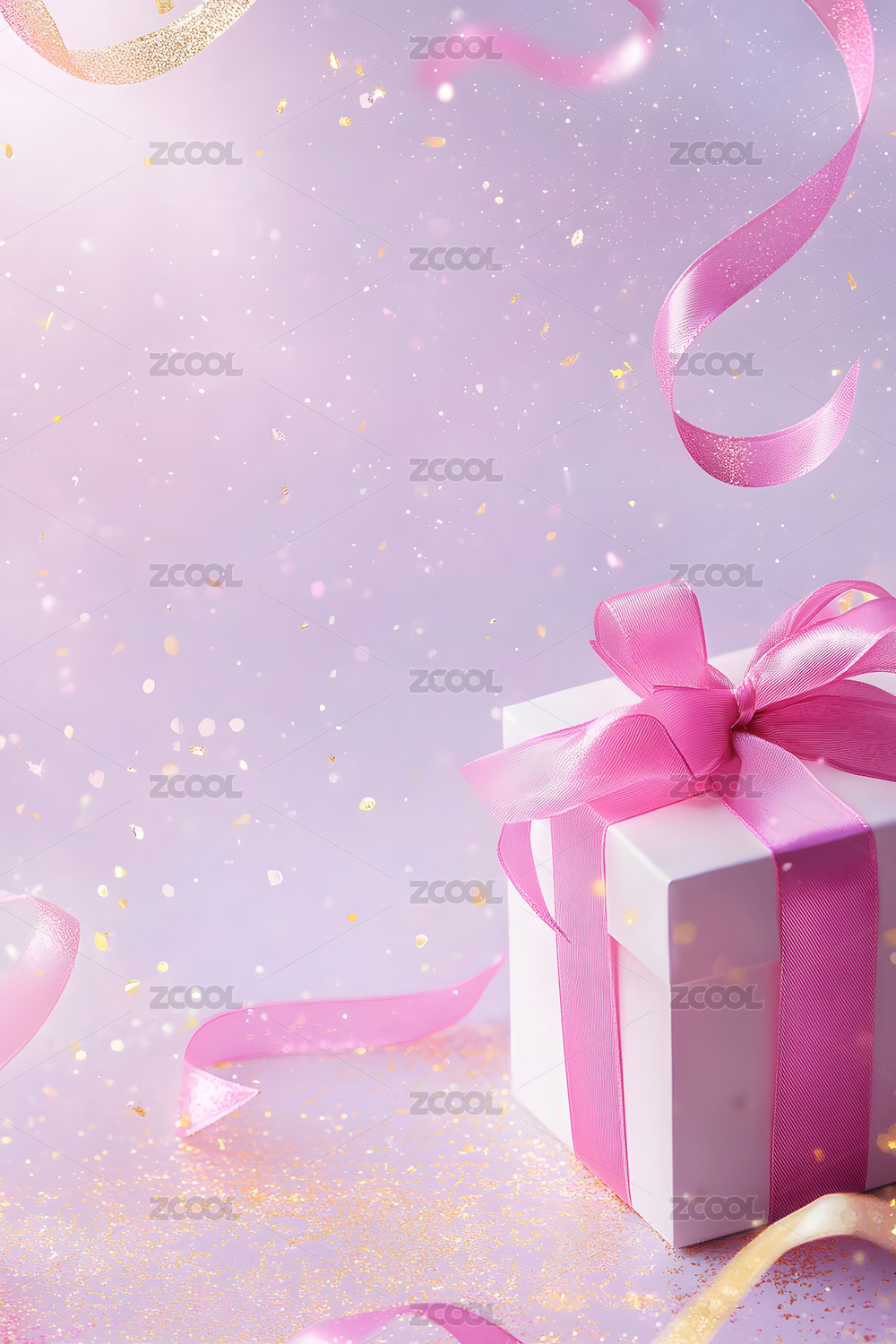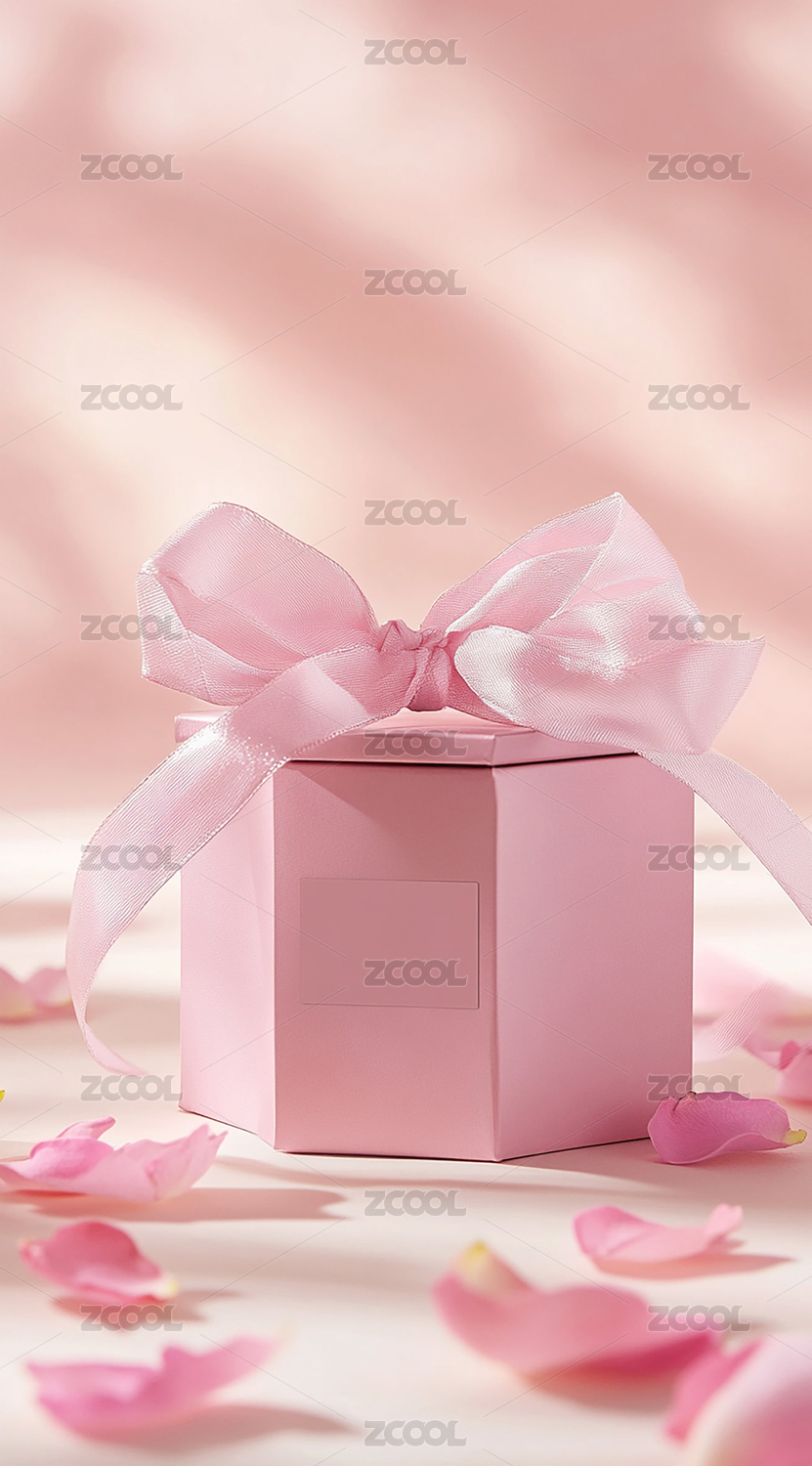 粉色礼盒与飘带的梦幻场景