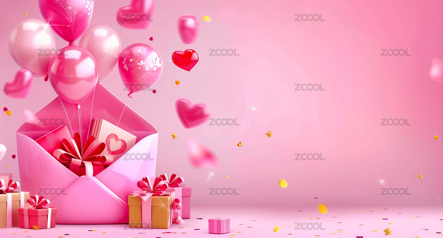 情人节粉色信封背景插画