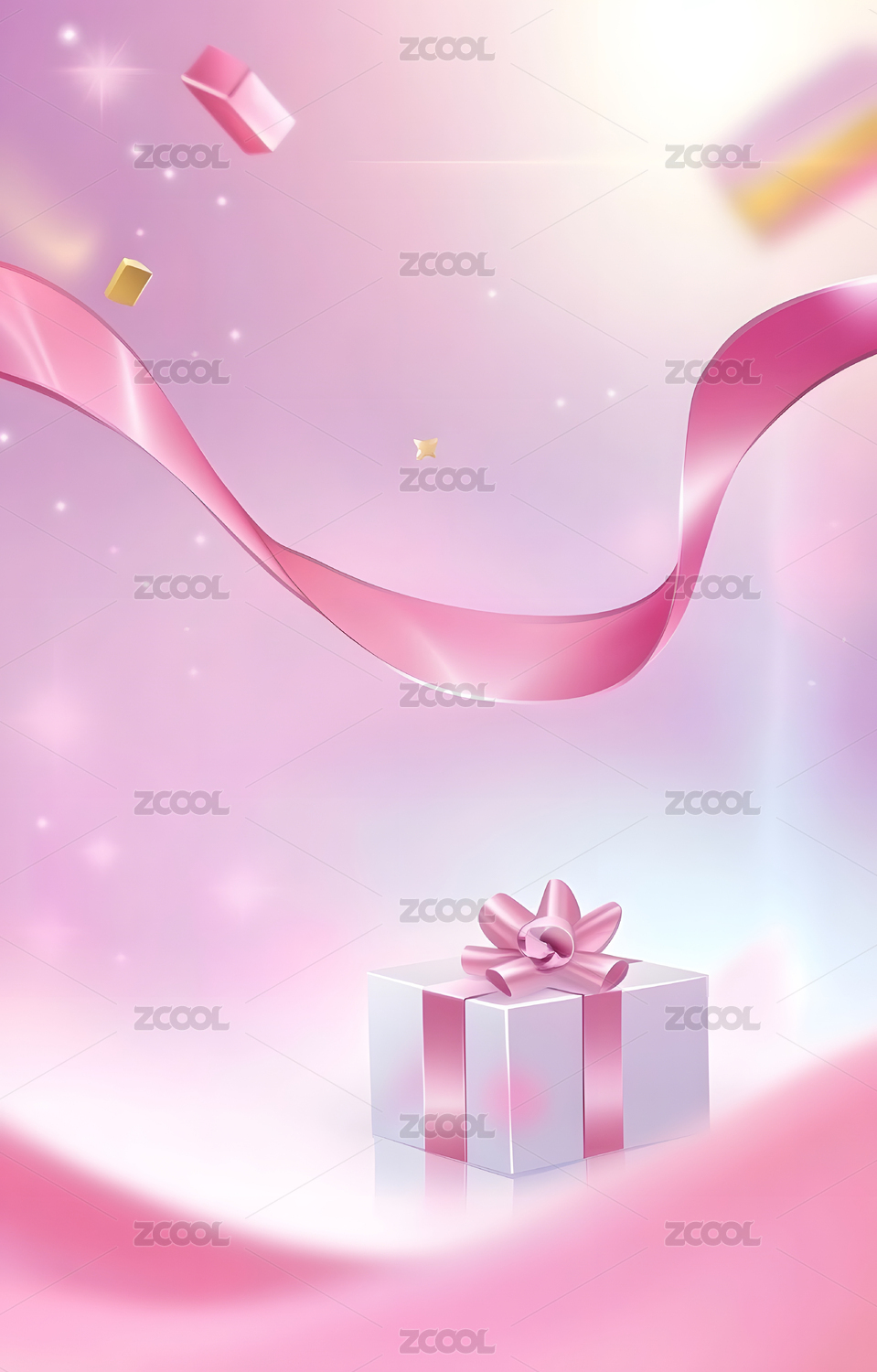 粉色礼盒飘带梦幻背景
