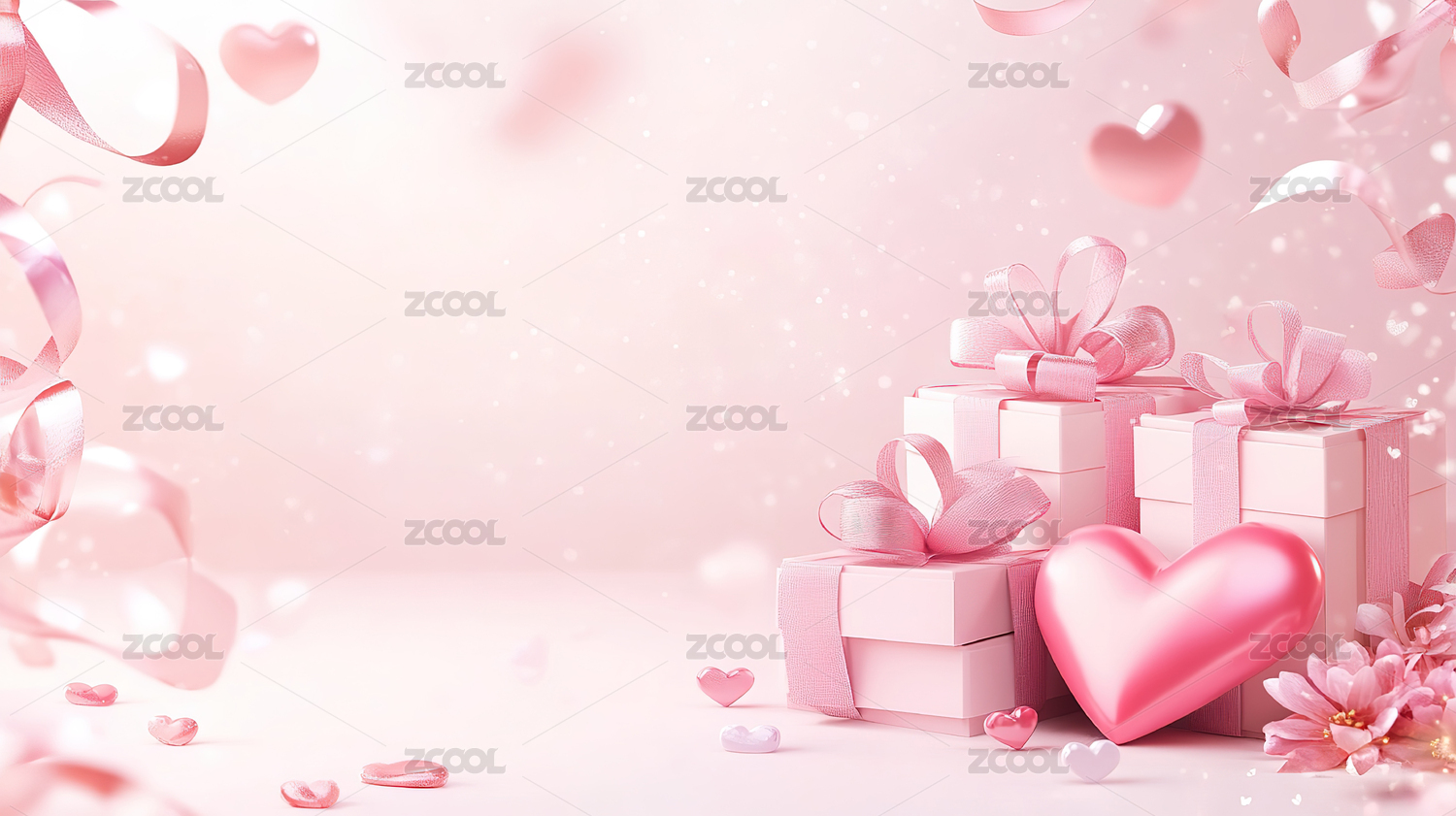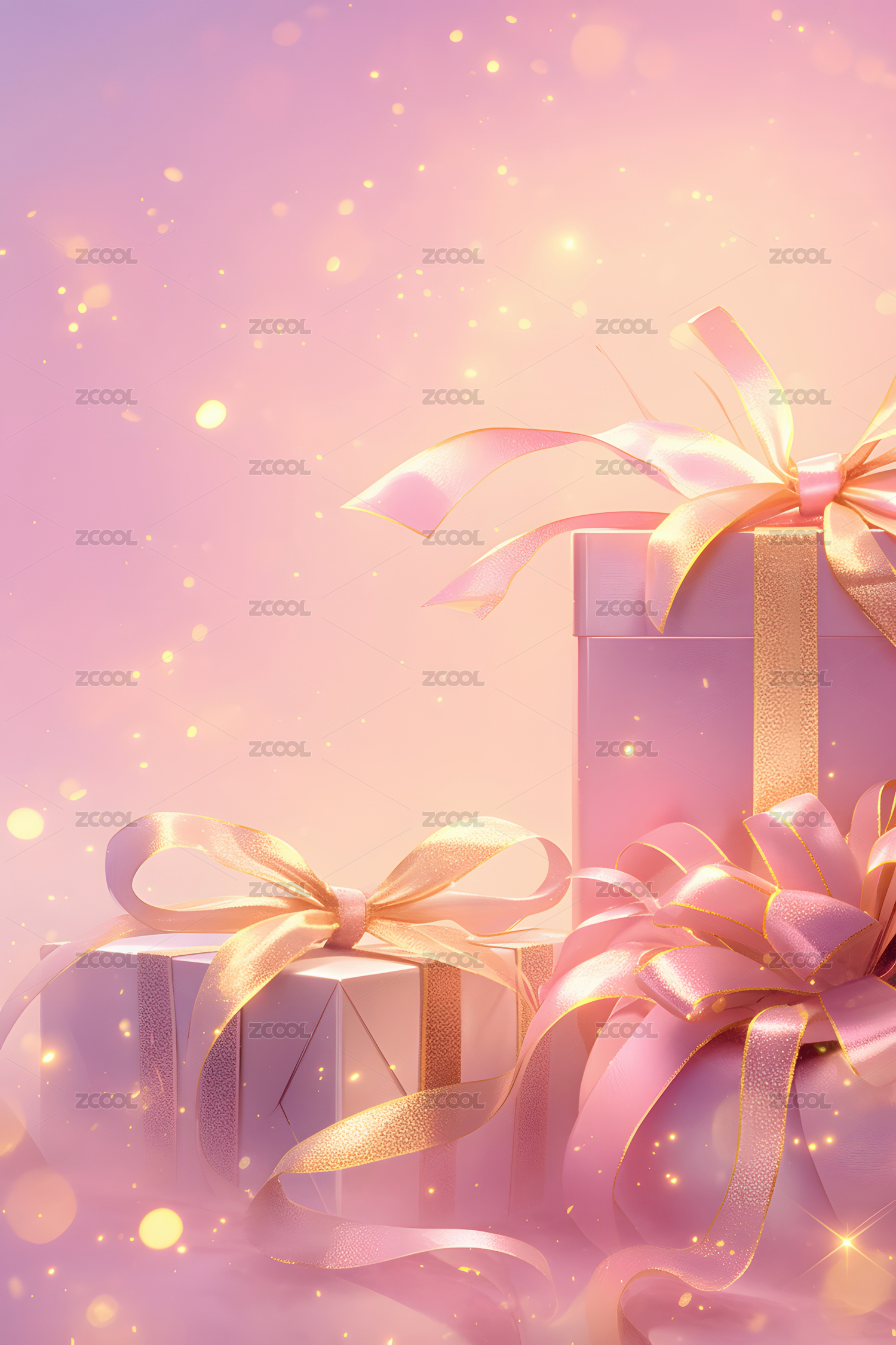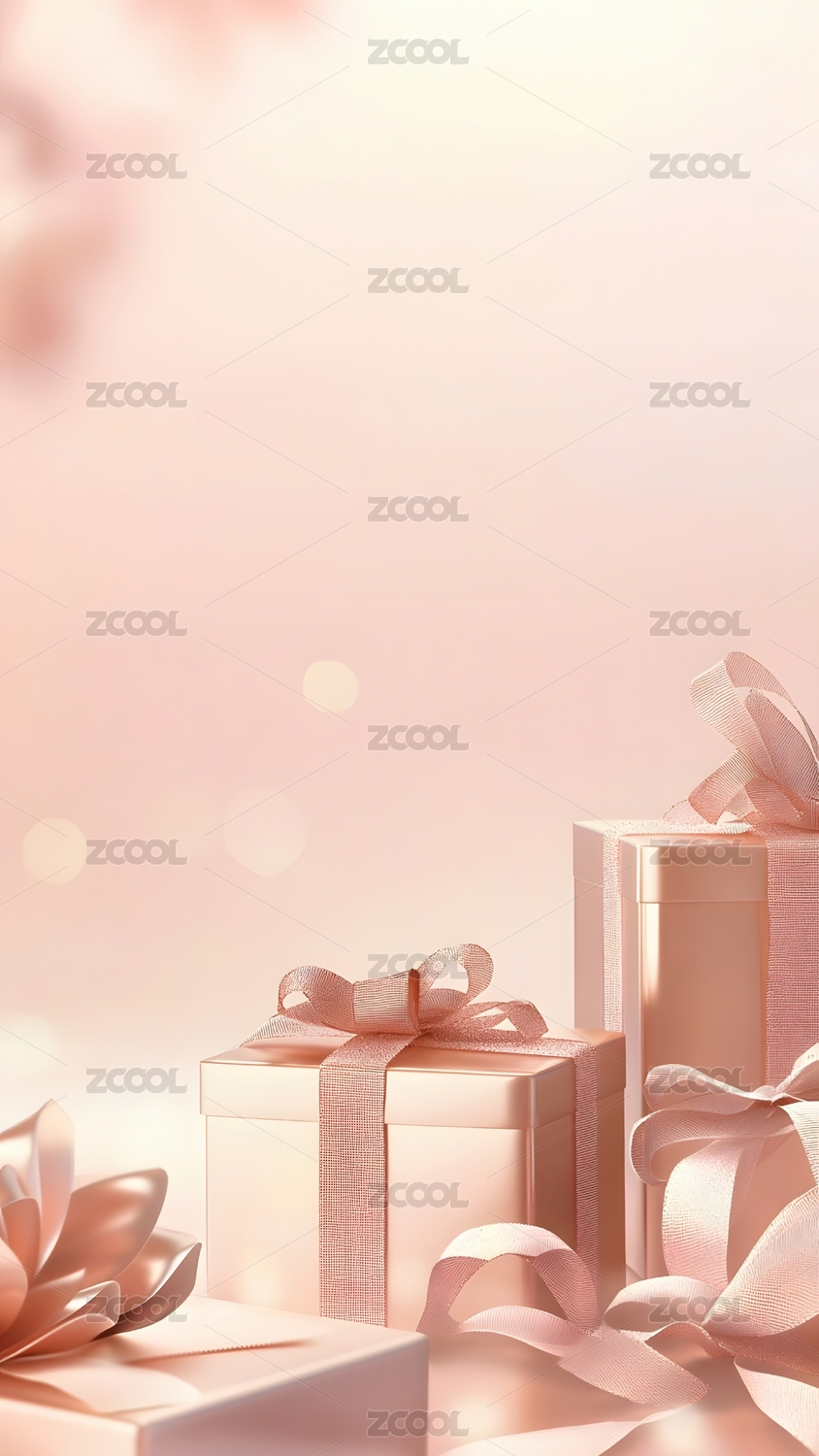 粉色丝带与礼盒的梦幻场景