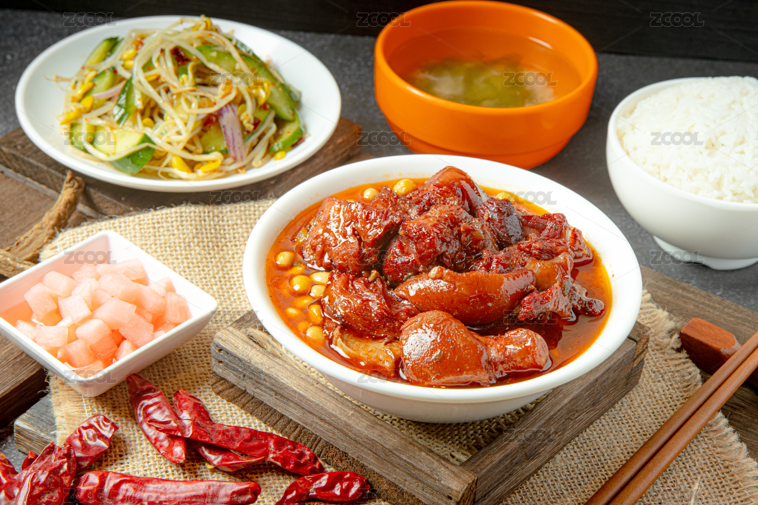 红烧猪肘肉套饭