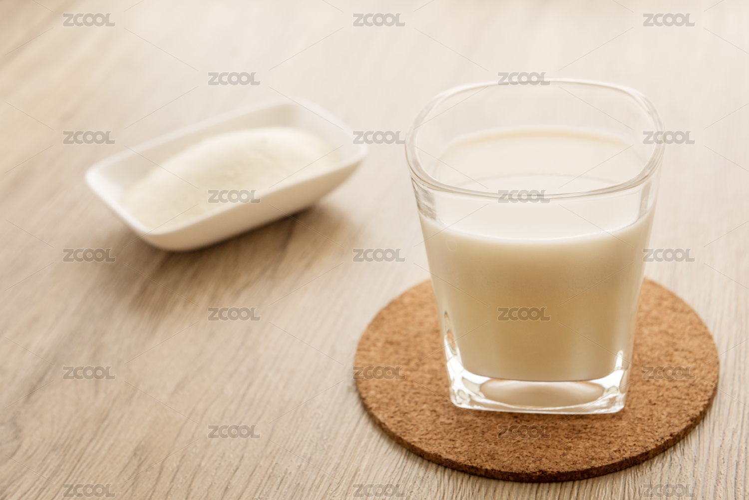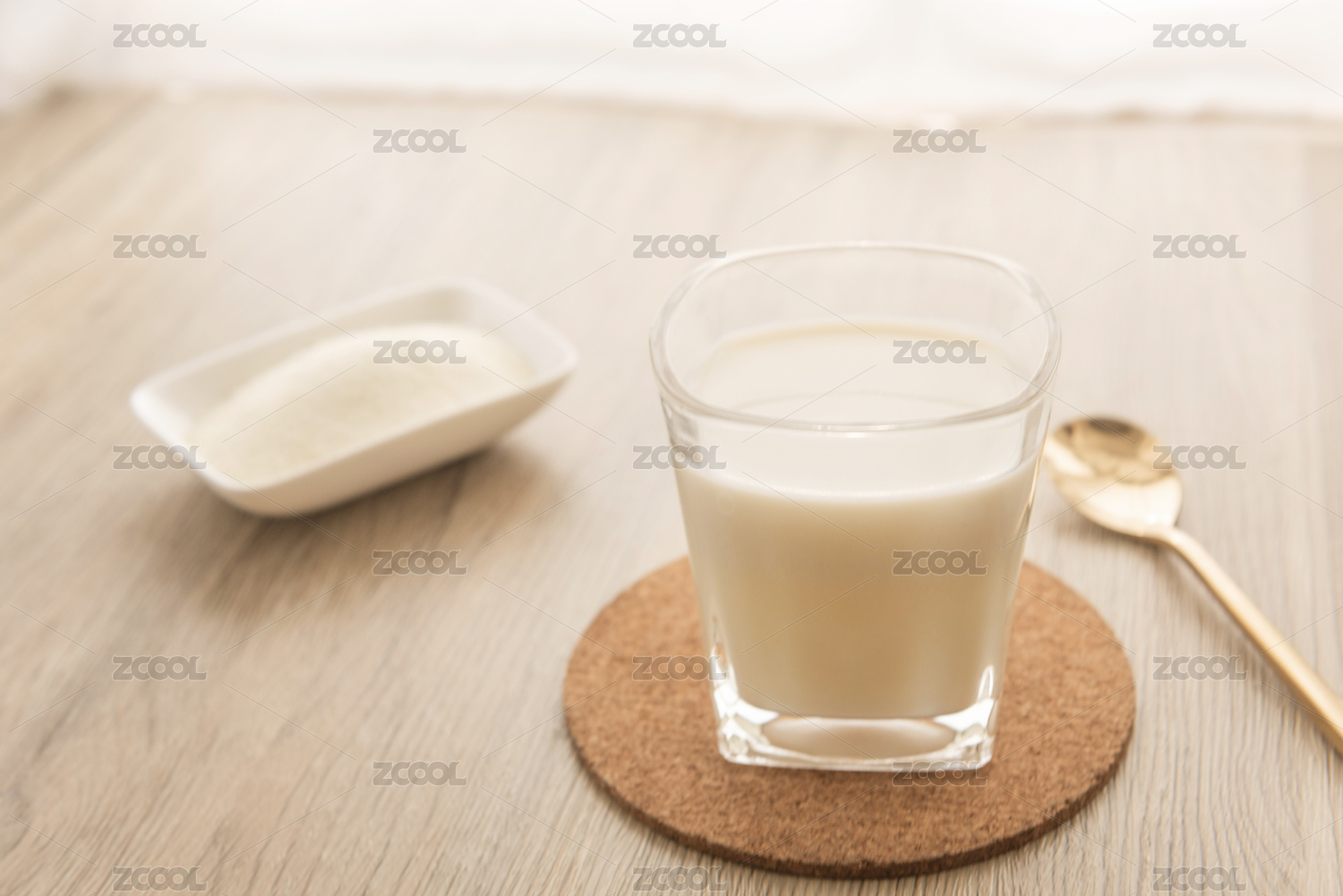 一瓶牛奶和一杯牛奶,以及一个环保的纸质吸管,健康饮食