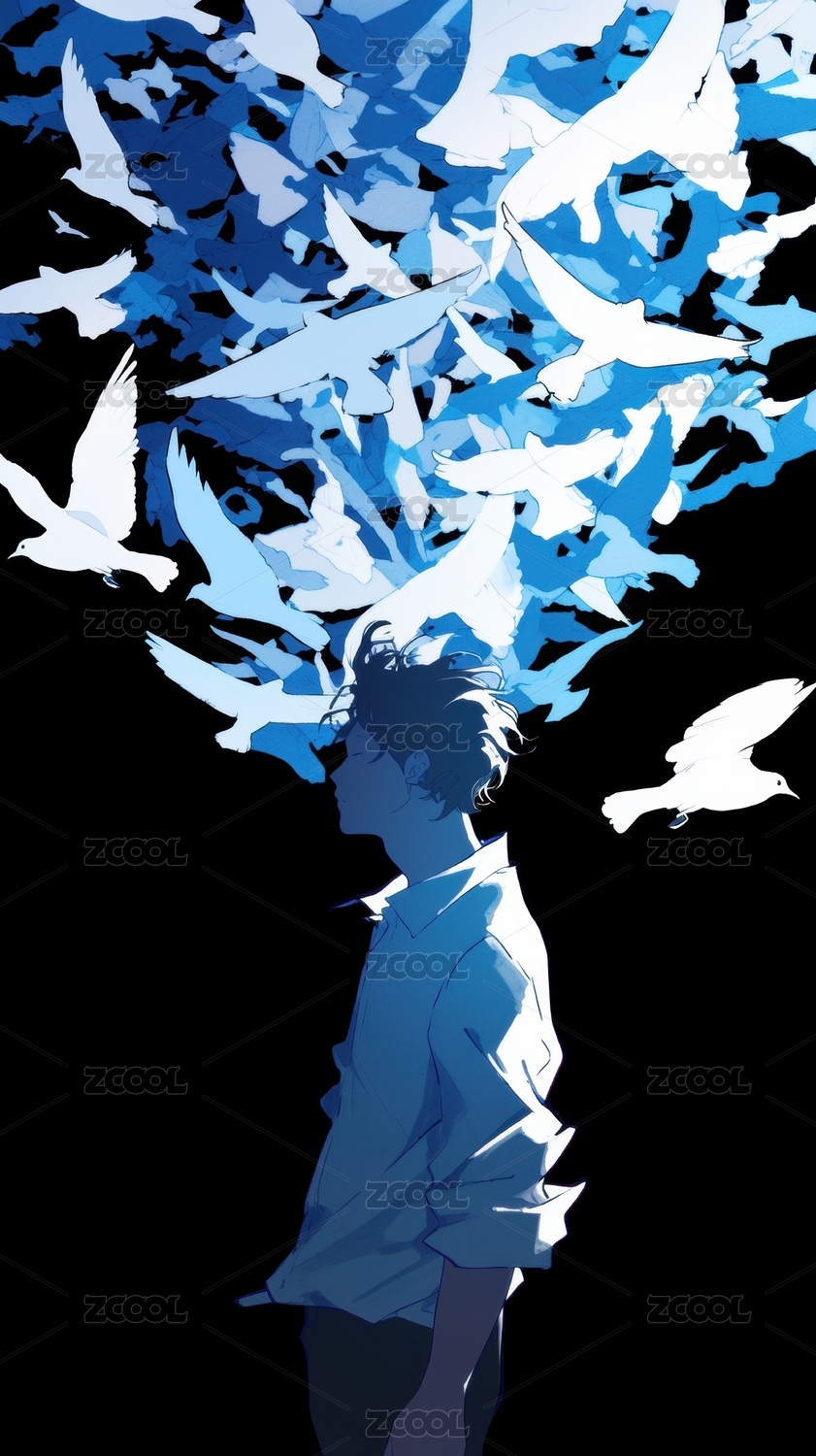 蓝调少年仰望飞翔的群鸟