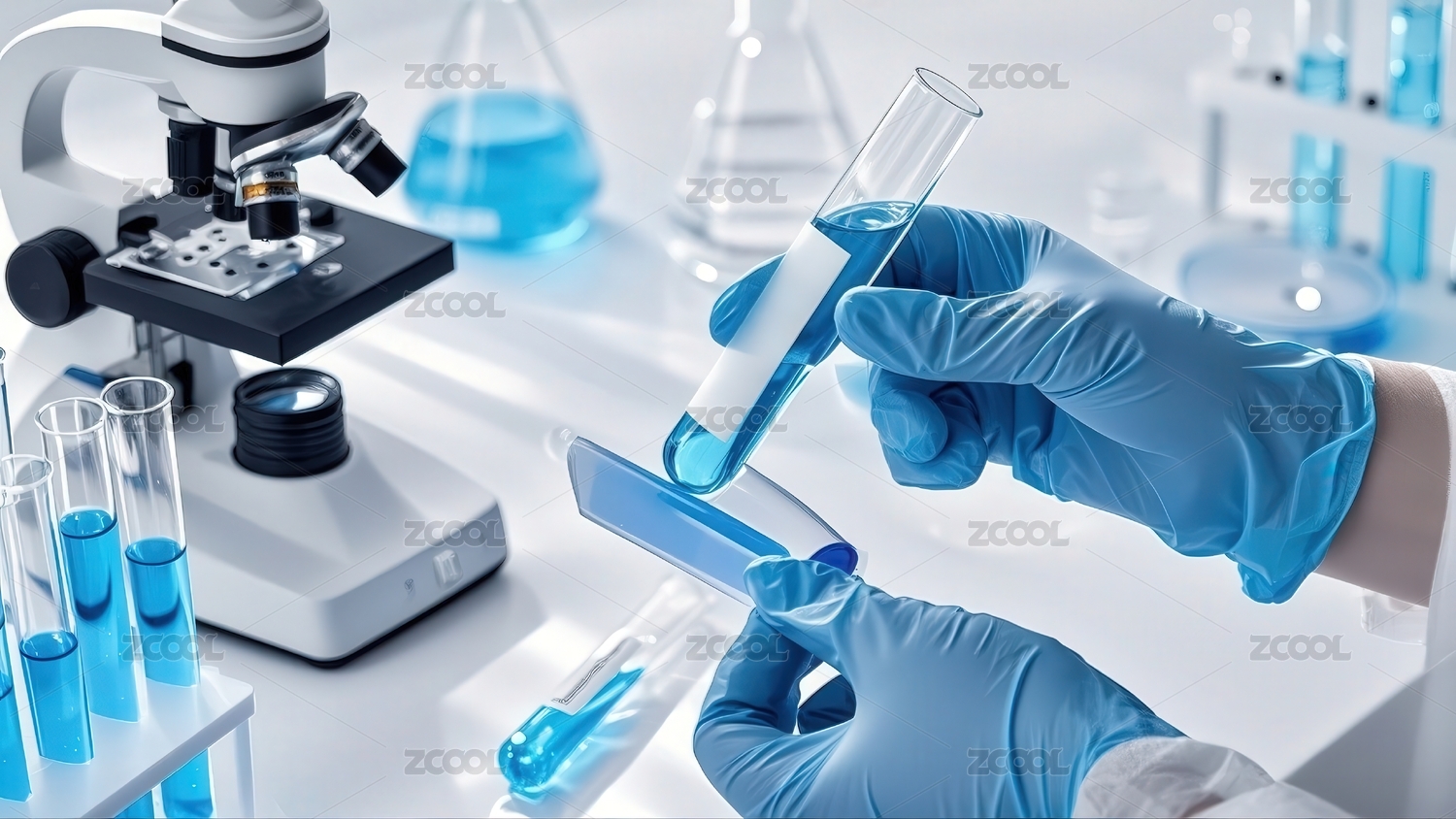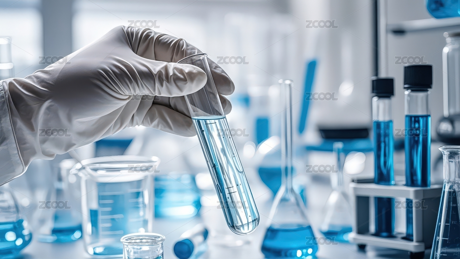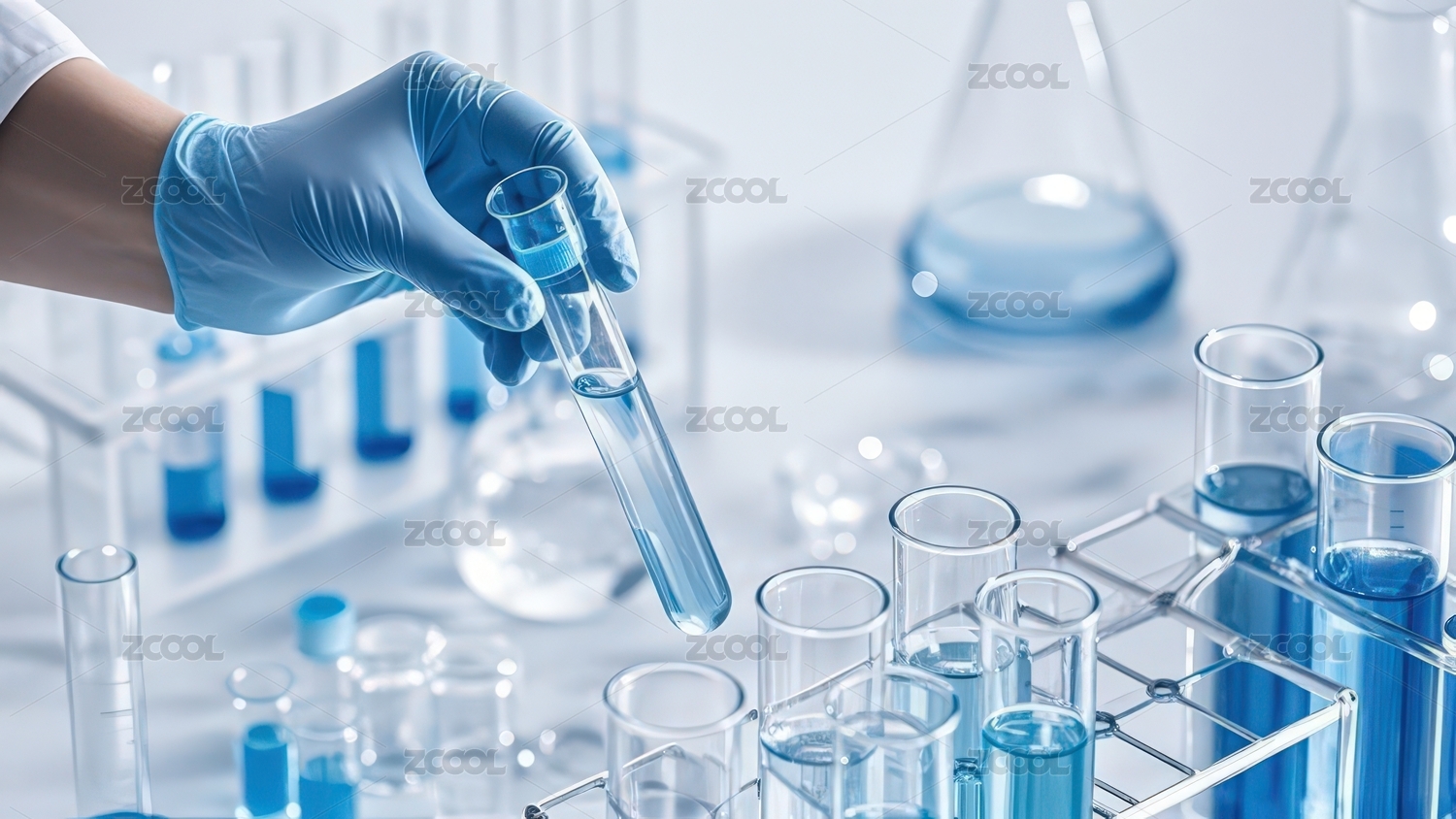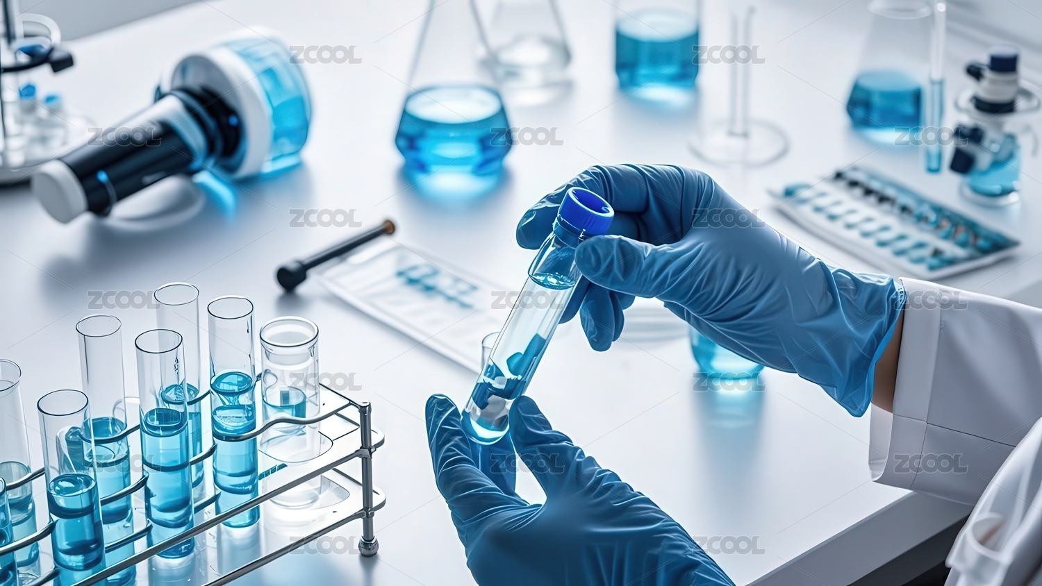 蓝色, 背景,DXCZ202405, 医疗, 技术,实验室, 试管, 手套, 科学家, 化学