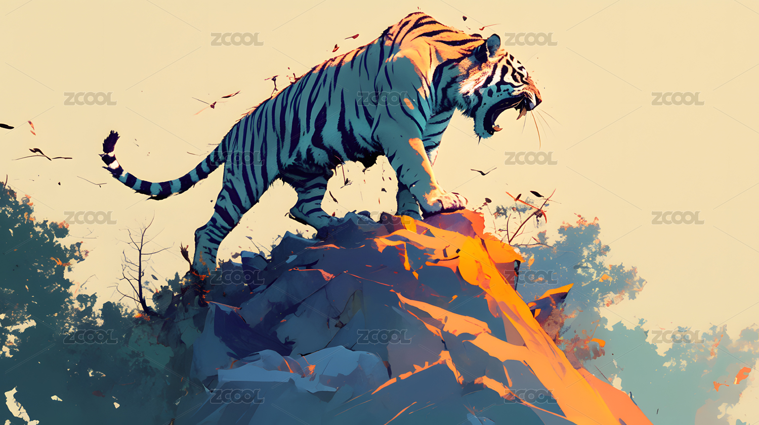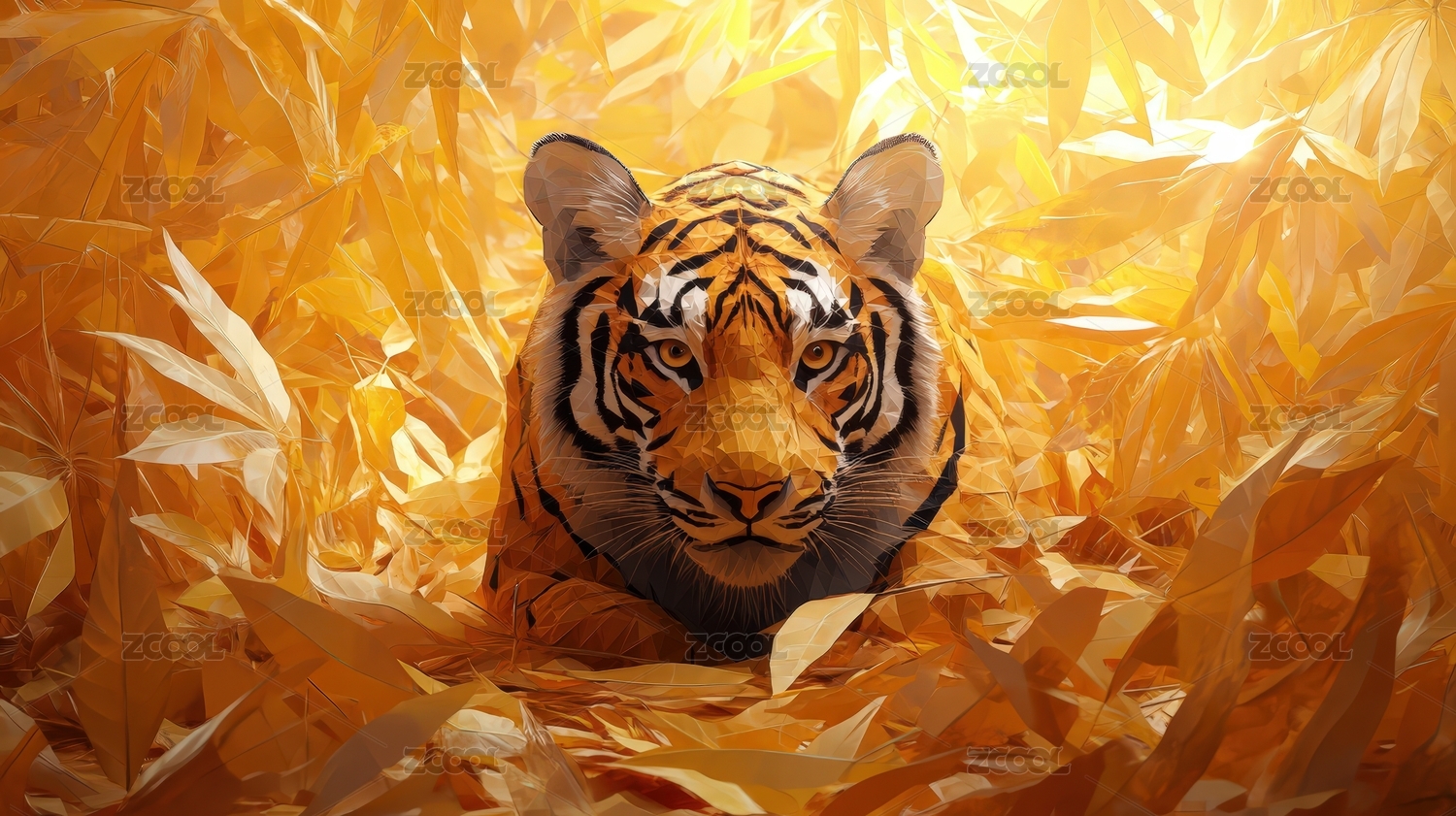 抽象,艺术,老虎,动物,金色,橙色,几何,秋天,绘画,野生