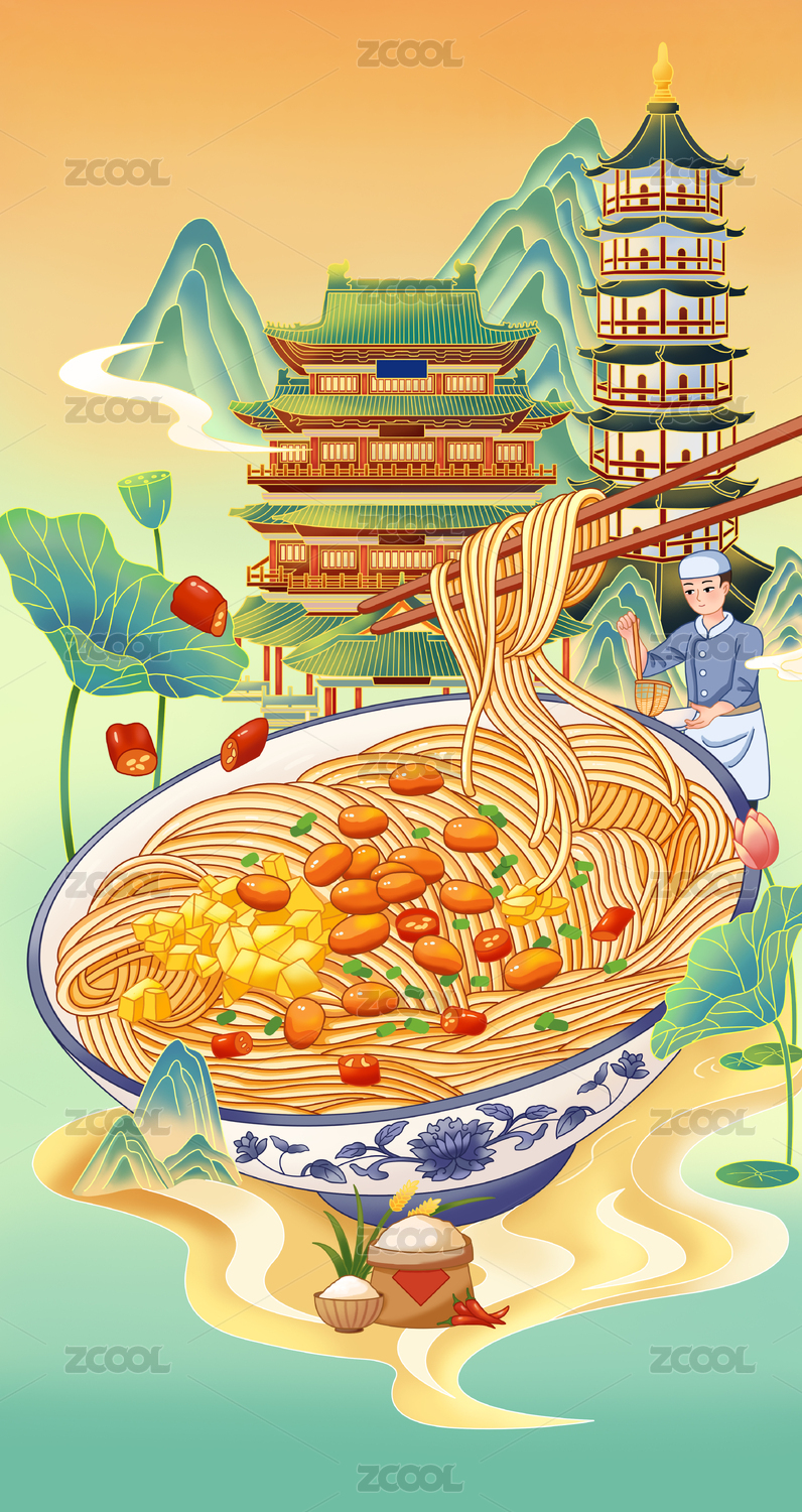 城市南昌传统特色美食南昌拌粉与建筑滕王阁