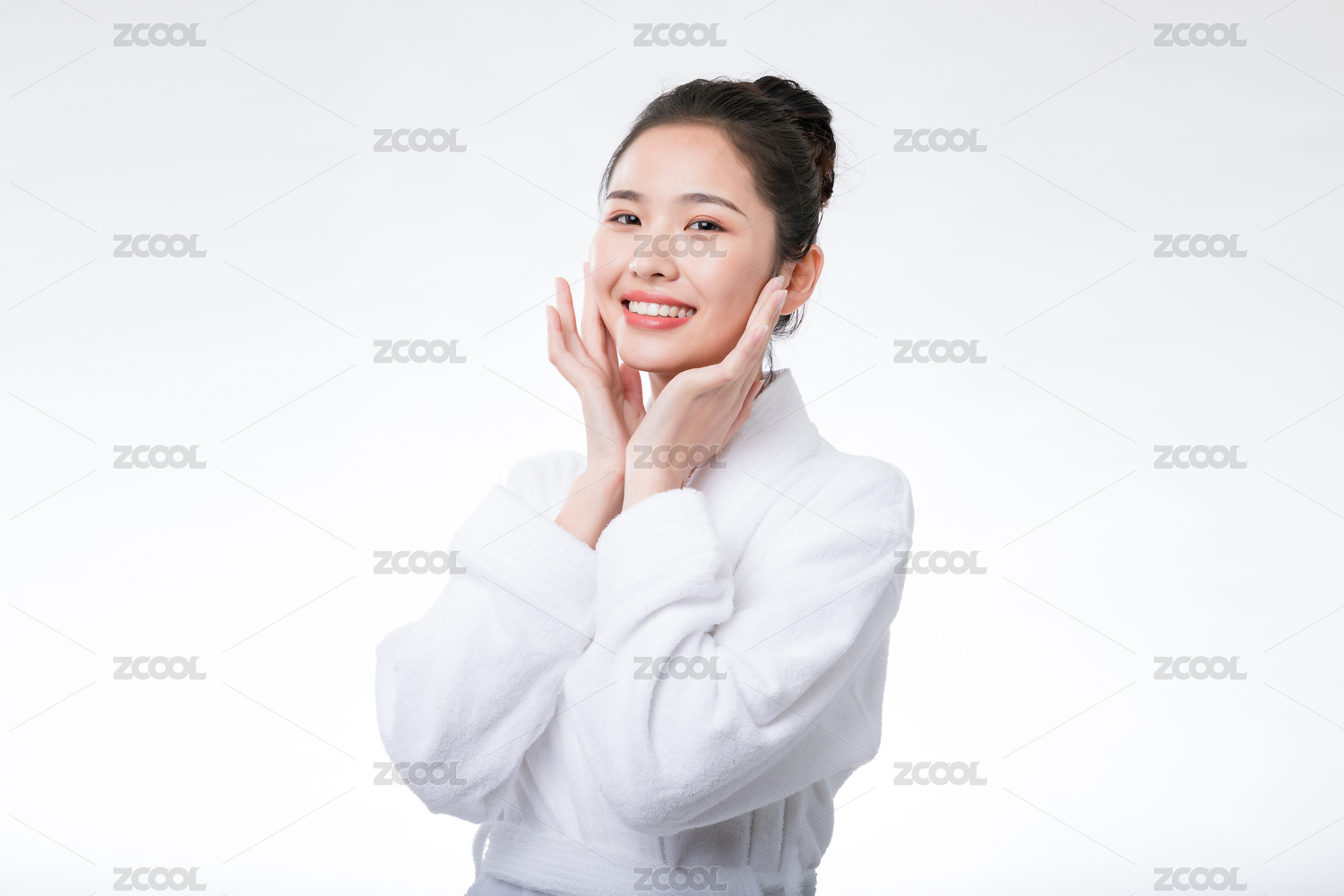 东方年轻女性双手抚摸脸颊