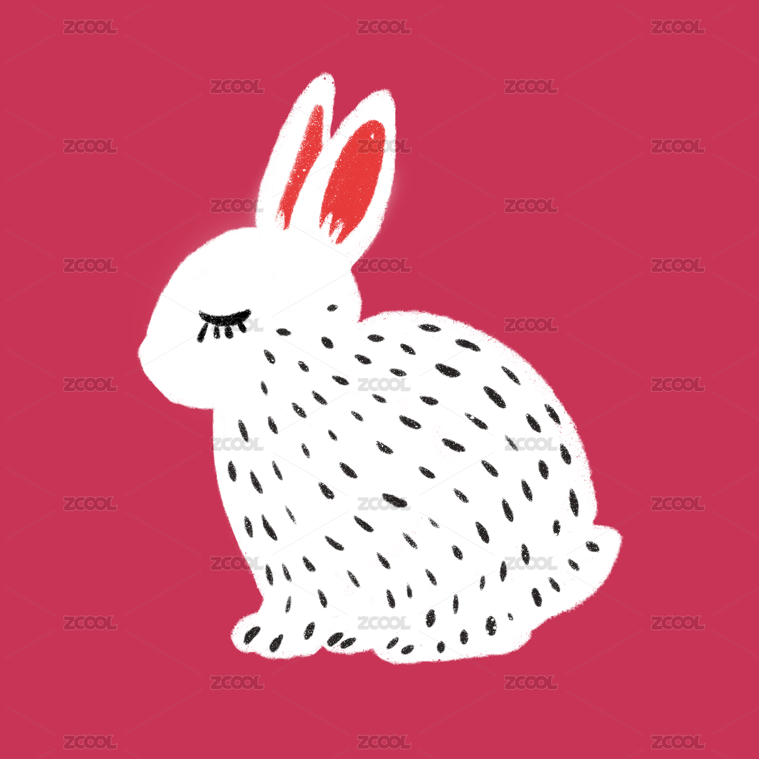 卡通毛茸茸兔子兔子耳朵藏着胡萝卜