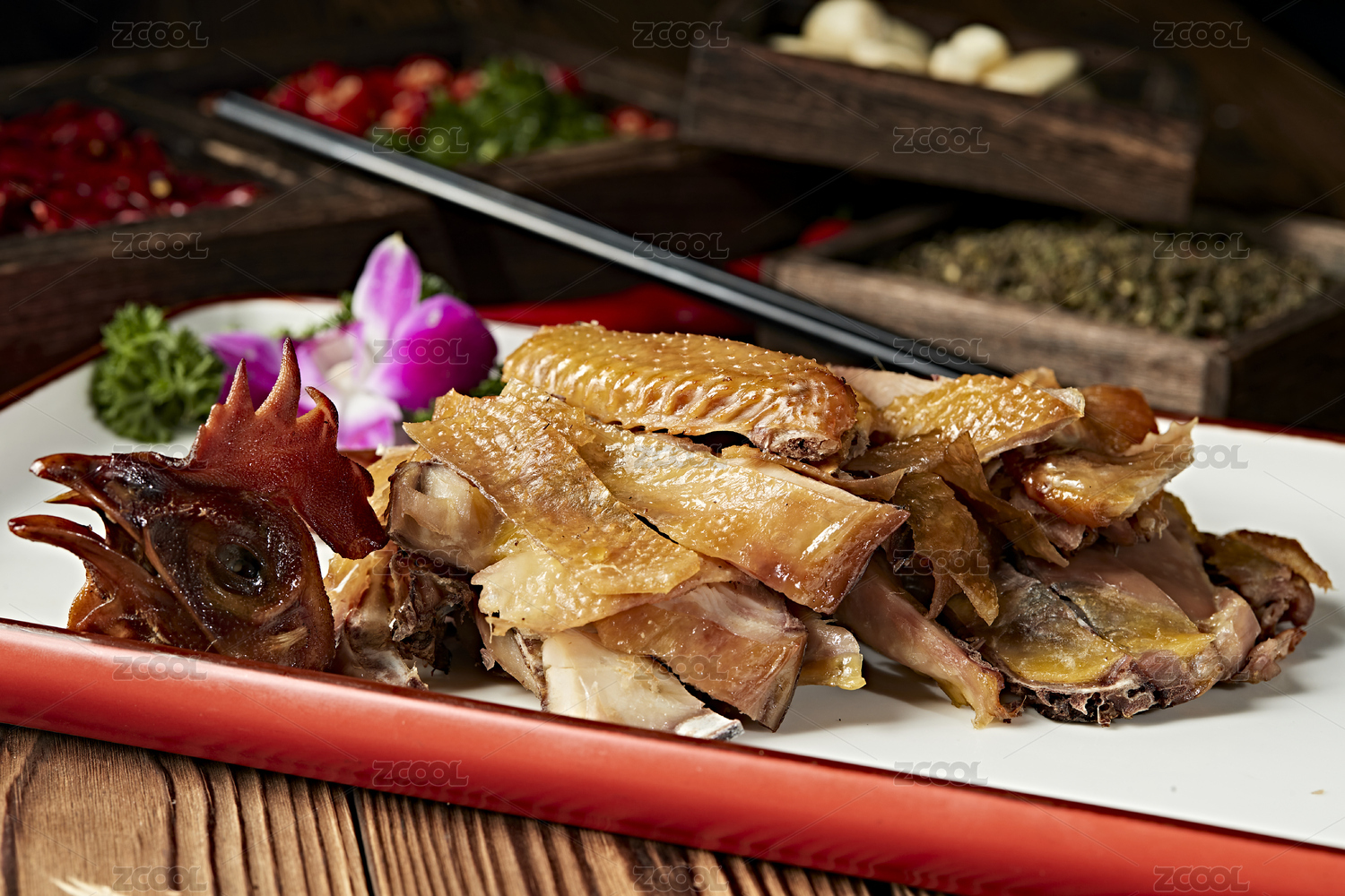 湖南名菜酱板鸭整齐的码放在白色瓷盘上