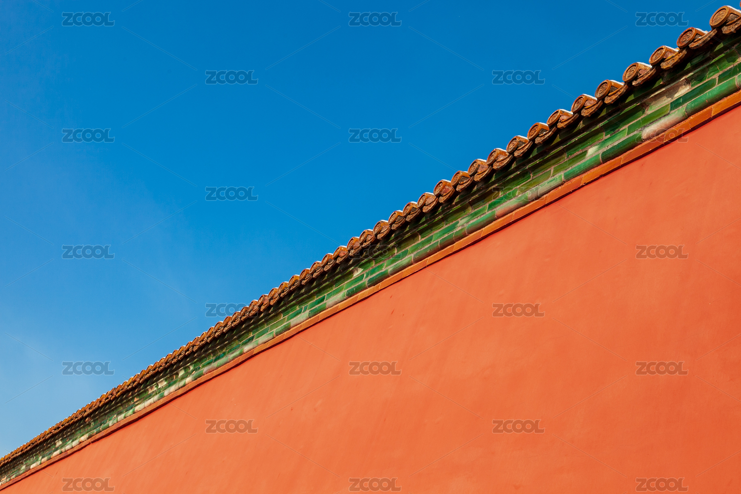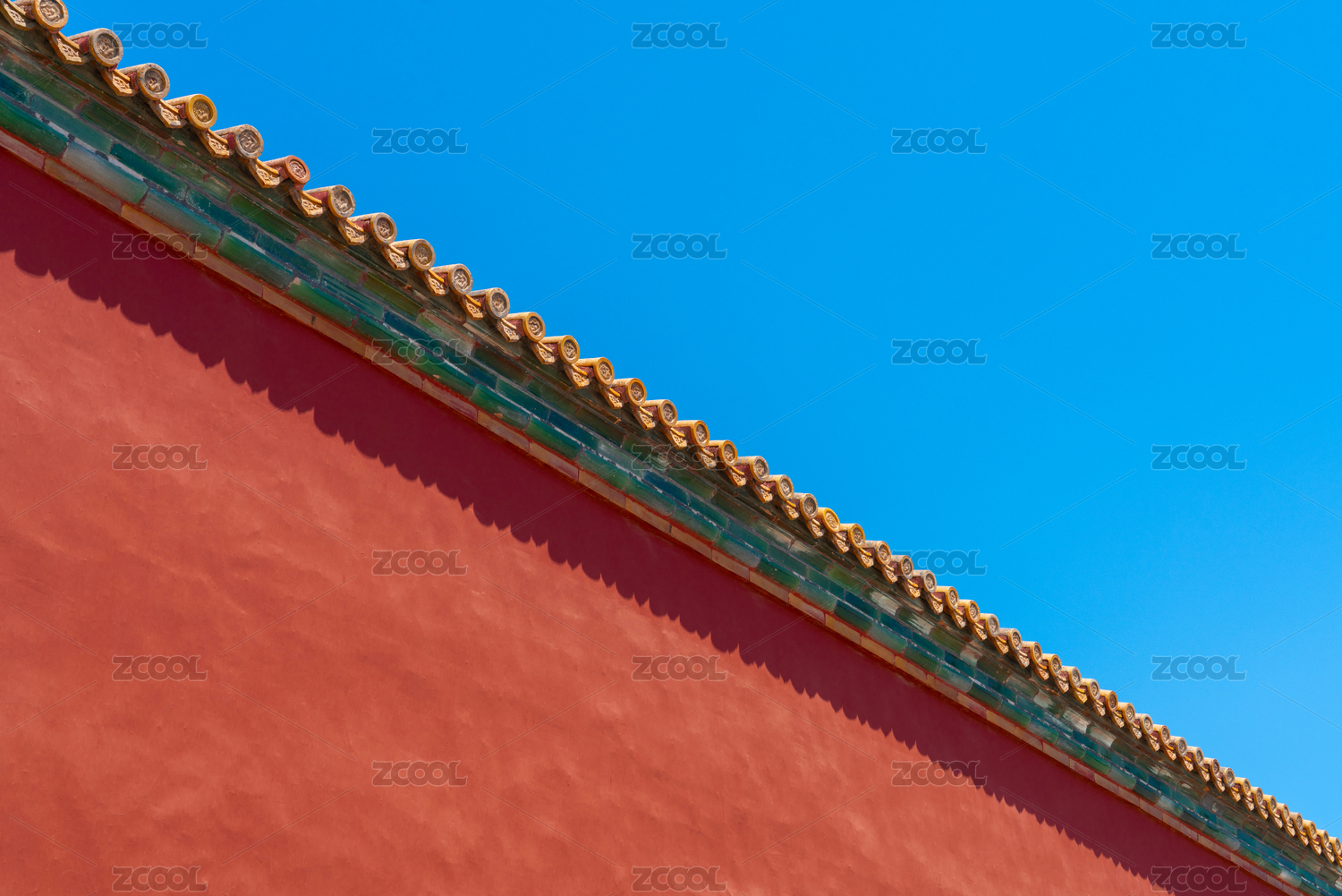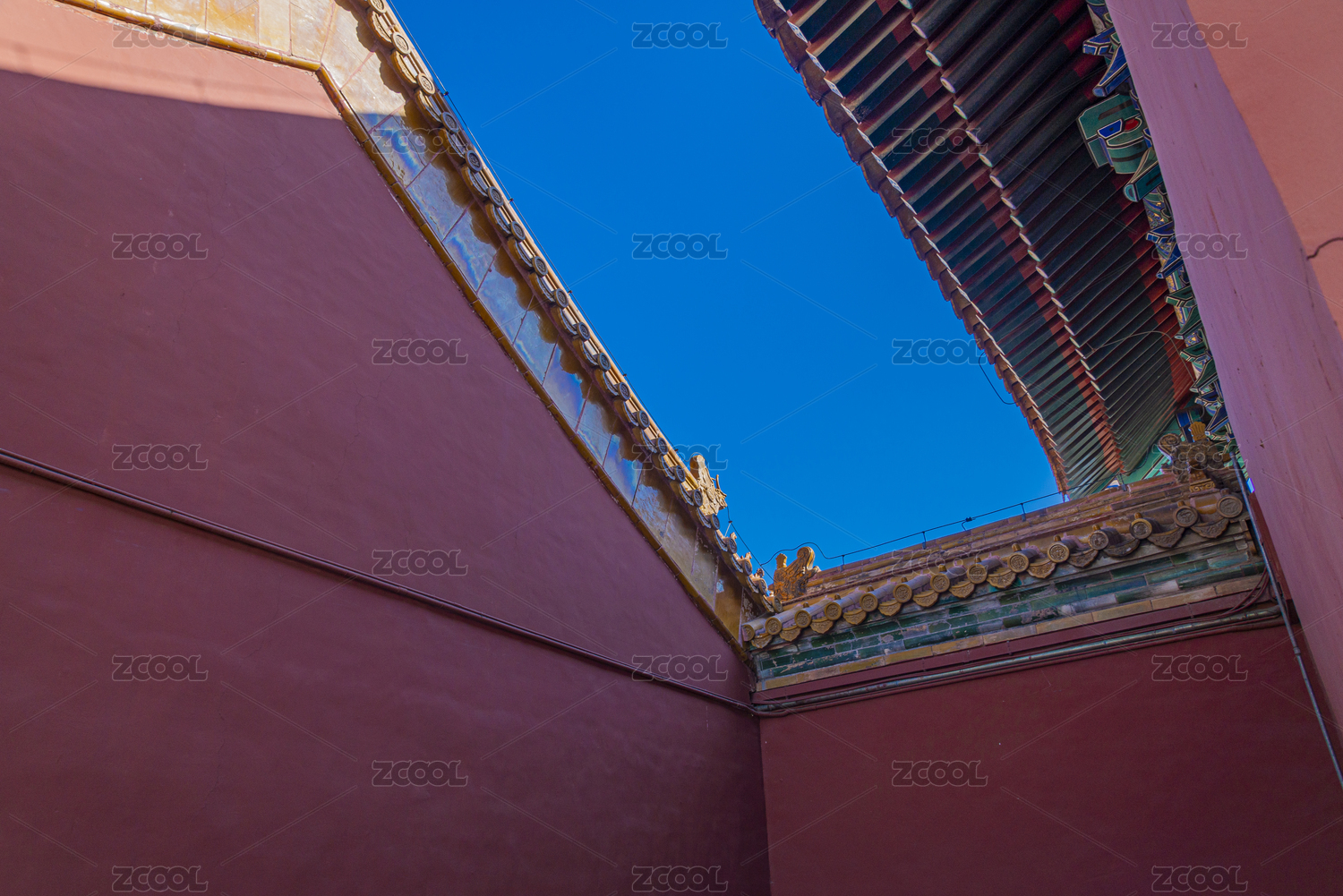 蓝天下的中国北京故宫博物馆的古宫殿建筑