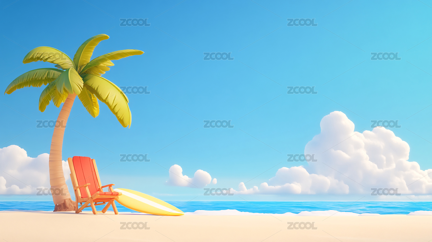 度假,夏天,大海,海边,椰子树,冲浪板,躺椅,海水,旅游,风景