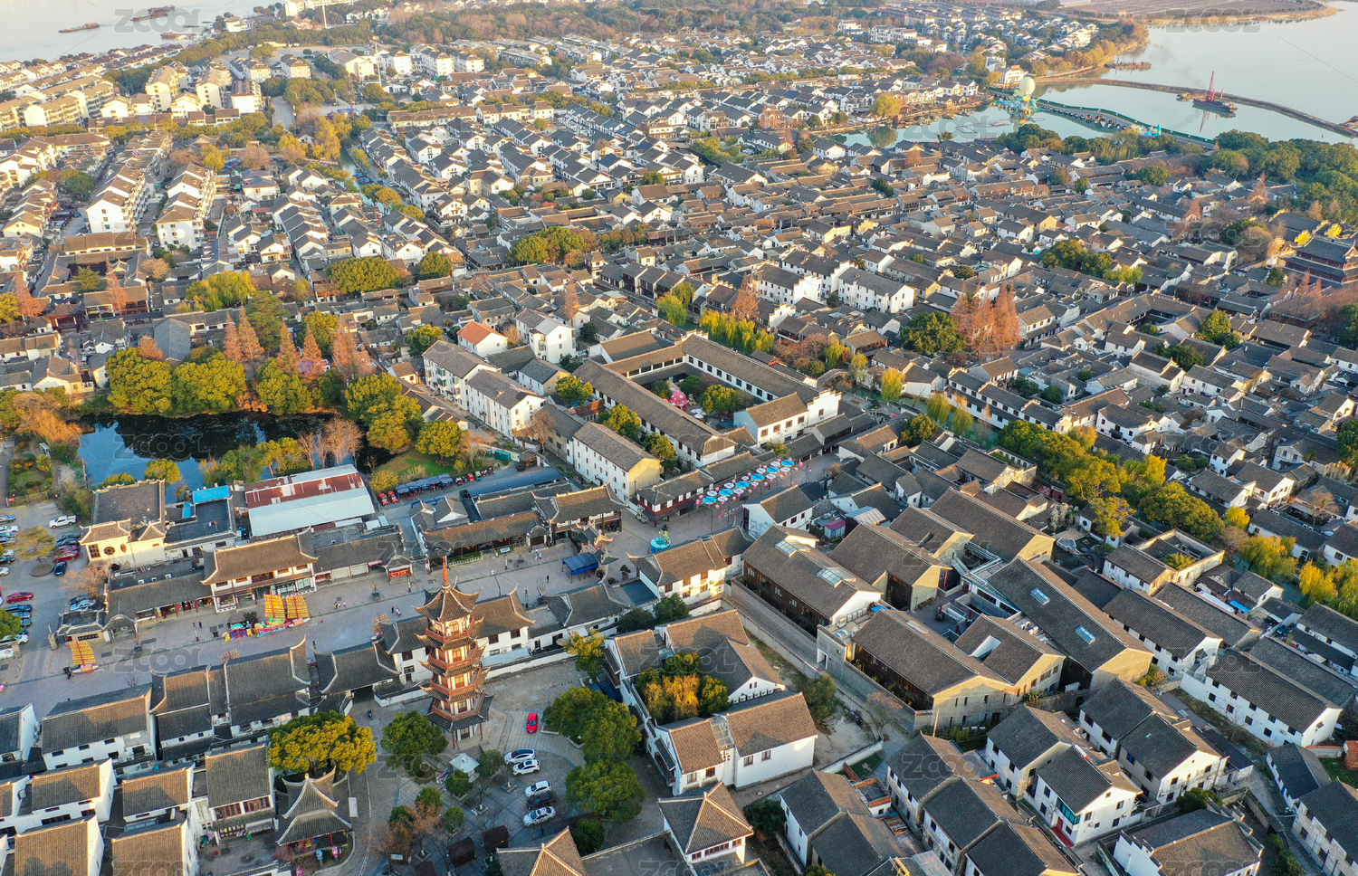 建筑物,航拍,大自然,小镇,江苏,苏州,同里古镇,古镇,城镇,乡镇