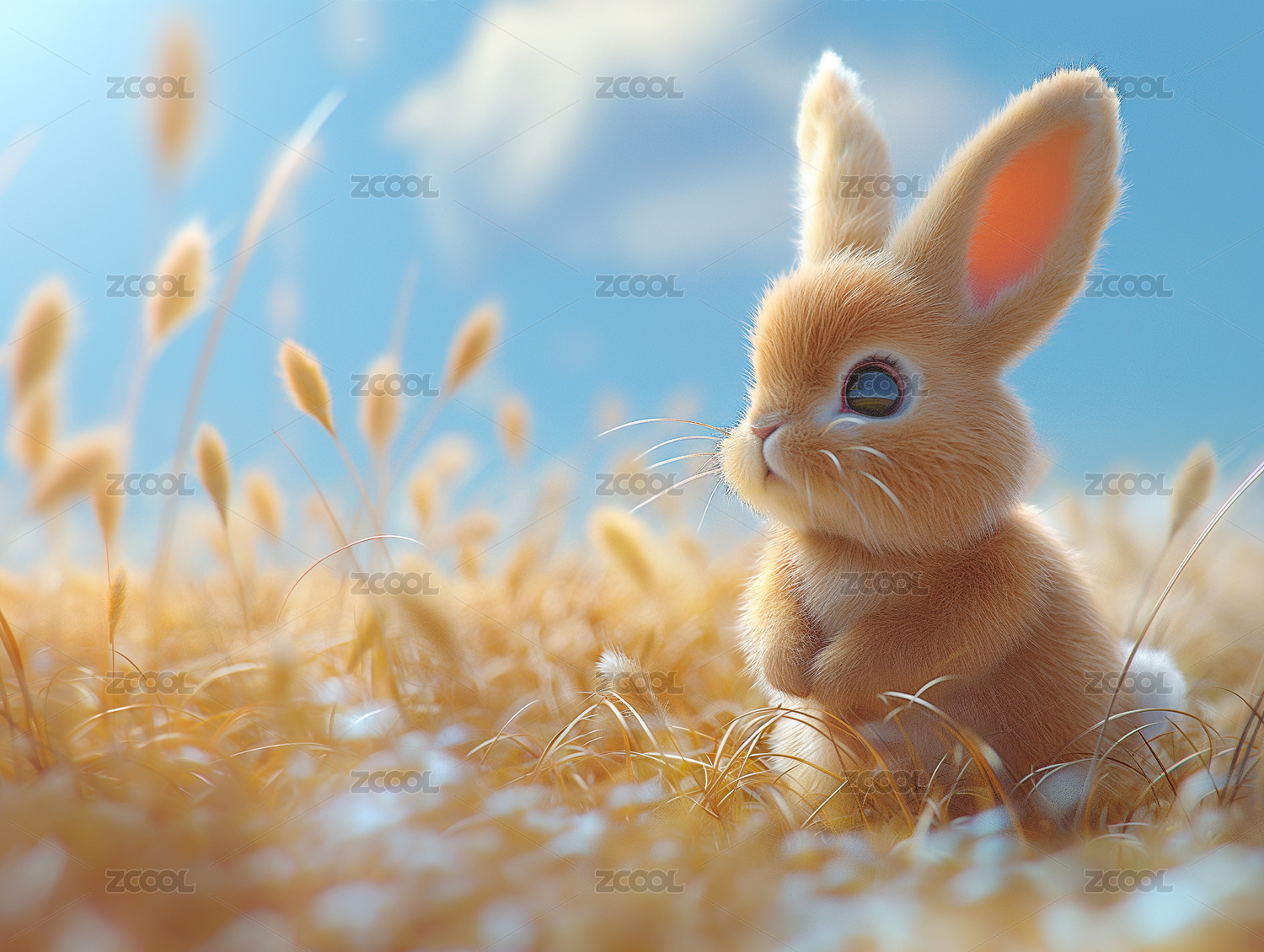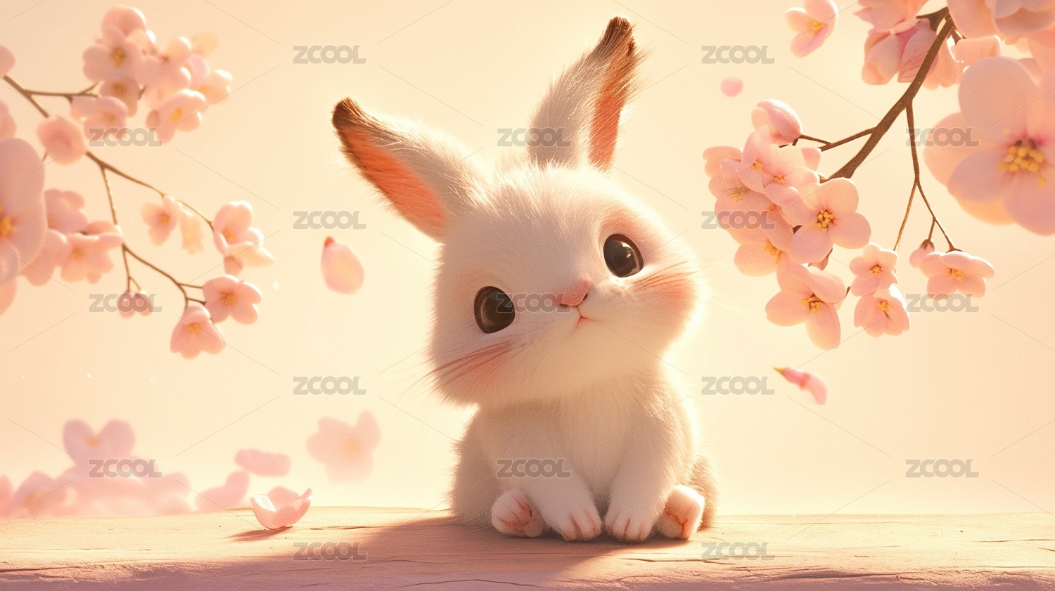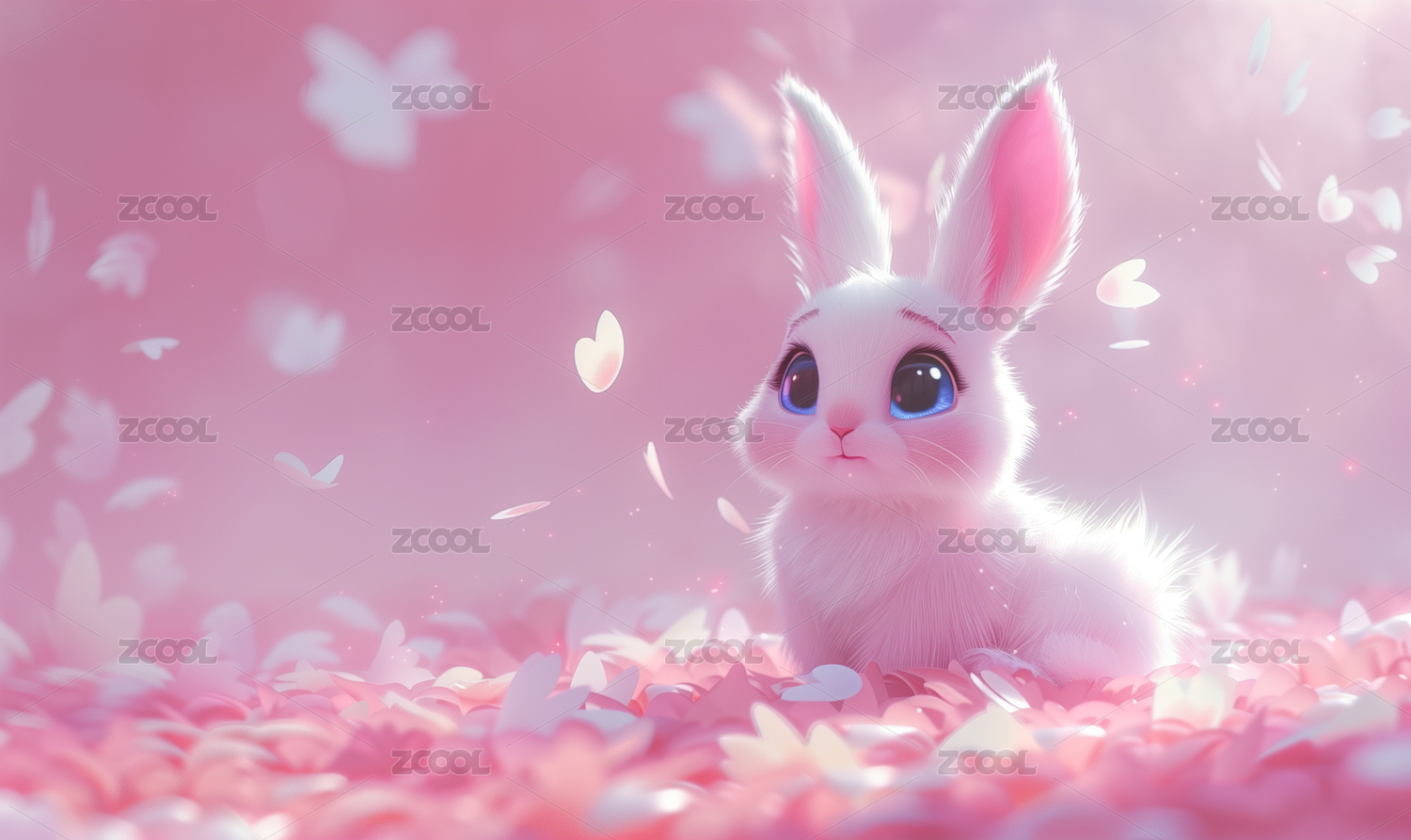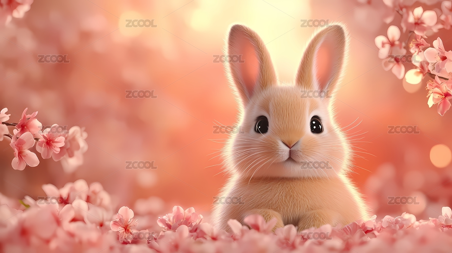 粉色兔子可爱唯美野生动物3D卡通插画壁纸