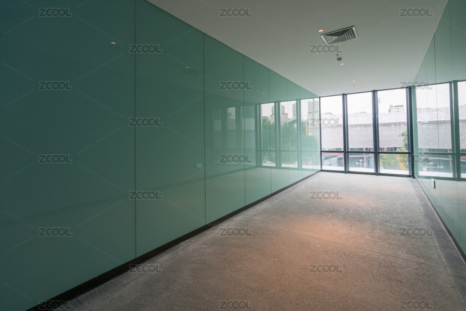 写字楼通道和玻璃窗口