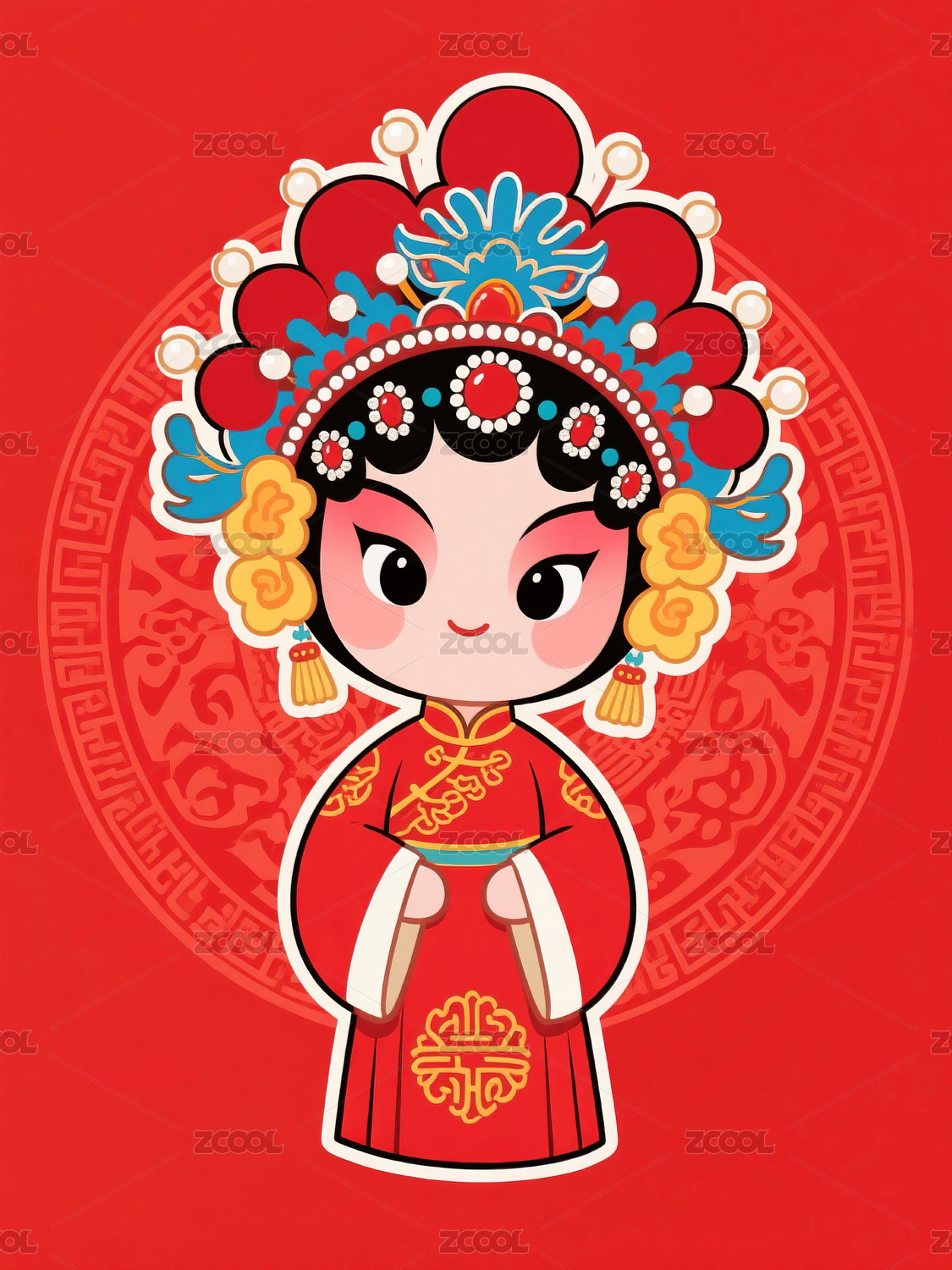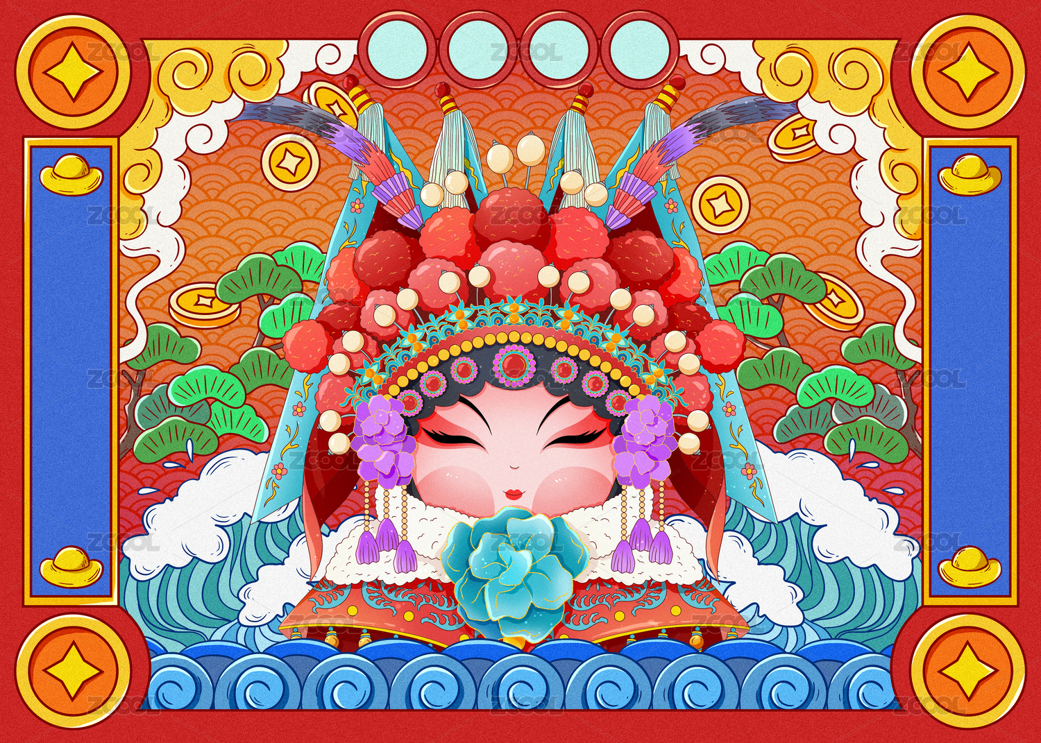 设计,插画,愉悦,创造力,油纸伞,戏曲,头饰,京剧,飘带,喜庆