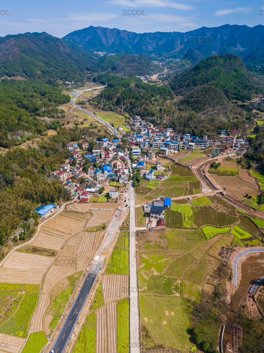 春日五彩田园村庄自然风光景色秀丽