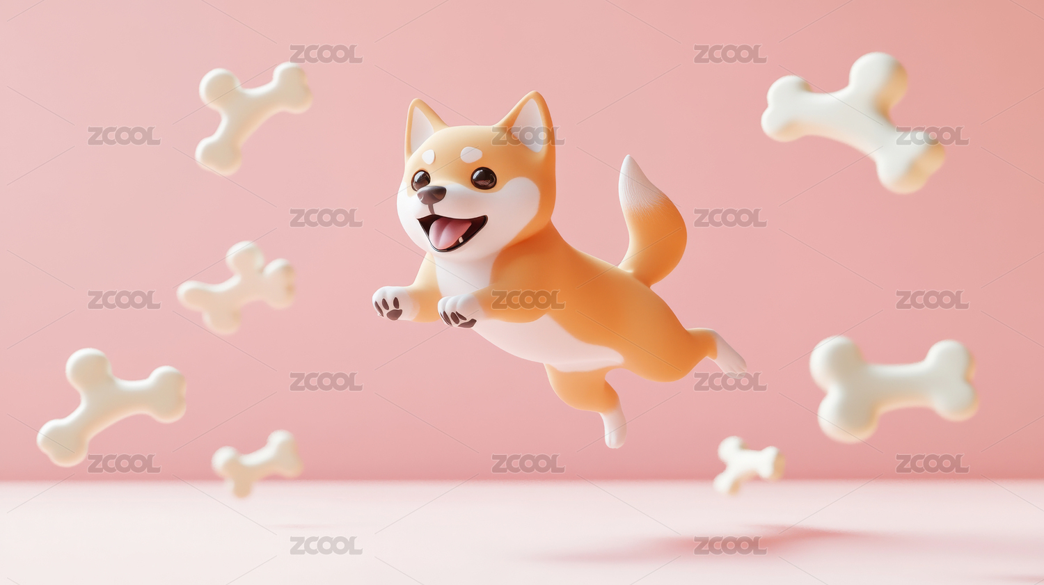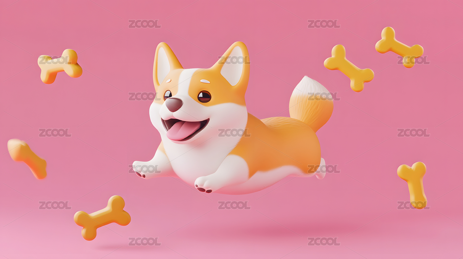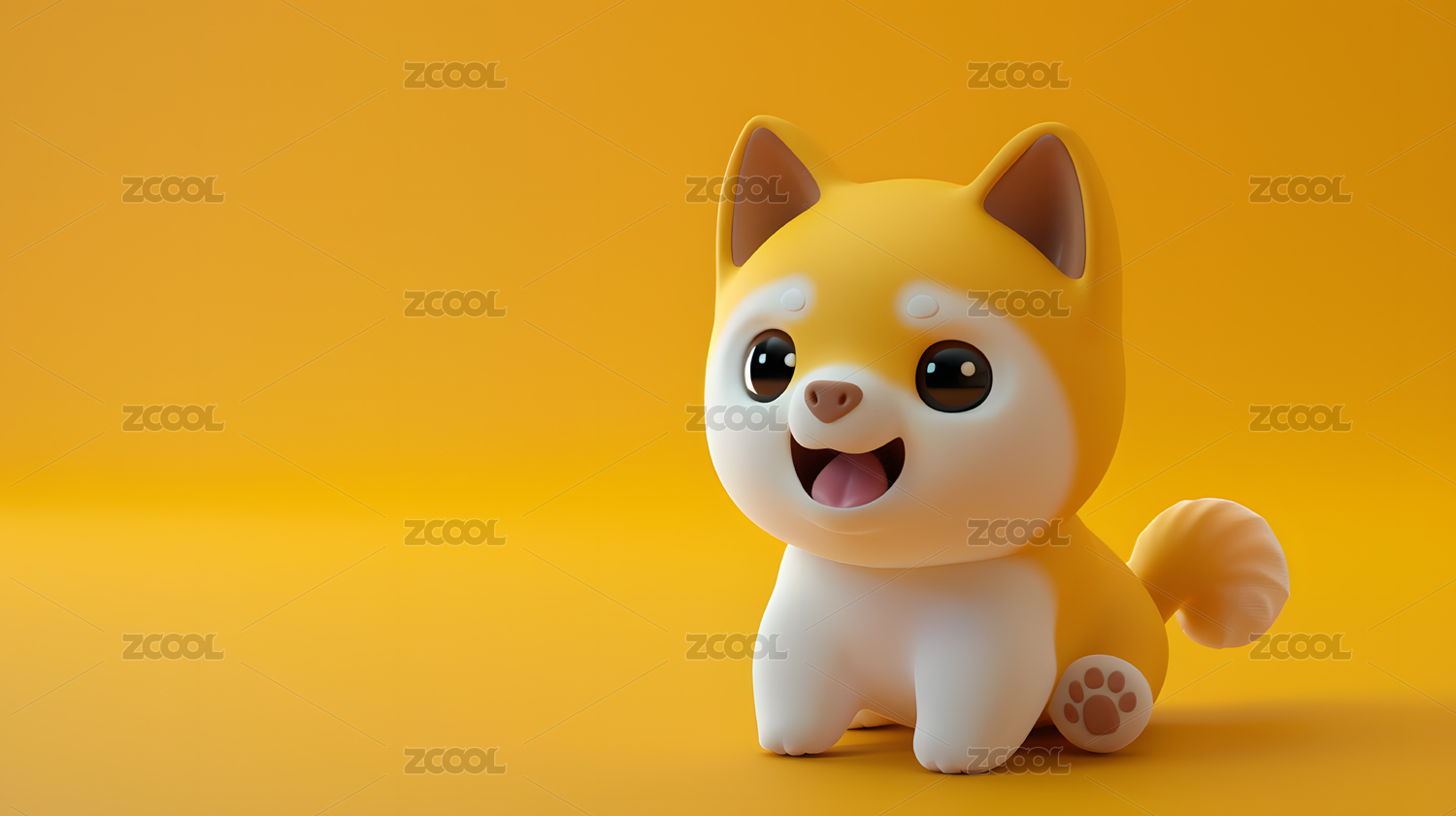 狗狗,柴犬,可爱,卡通,骨头,3D,简约,动物,壁纸,黄色