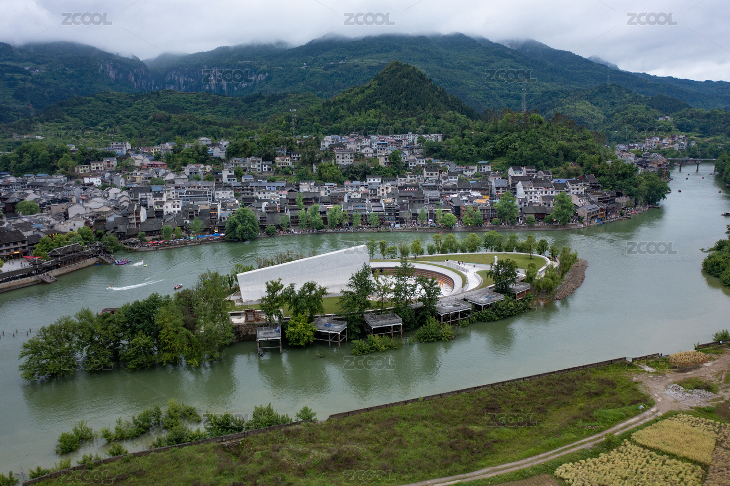 航拍湖南湘西边城茶峒风光