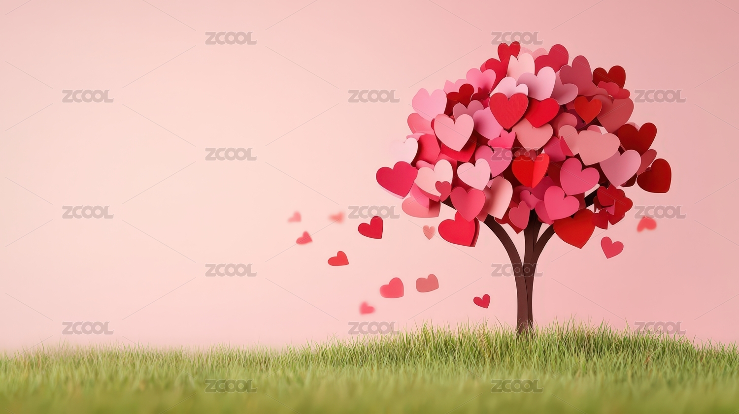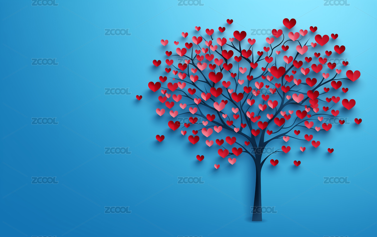 浪漫背景折纸恋爱心形树