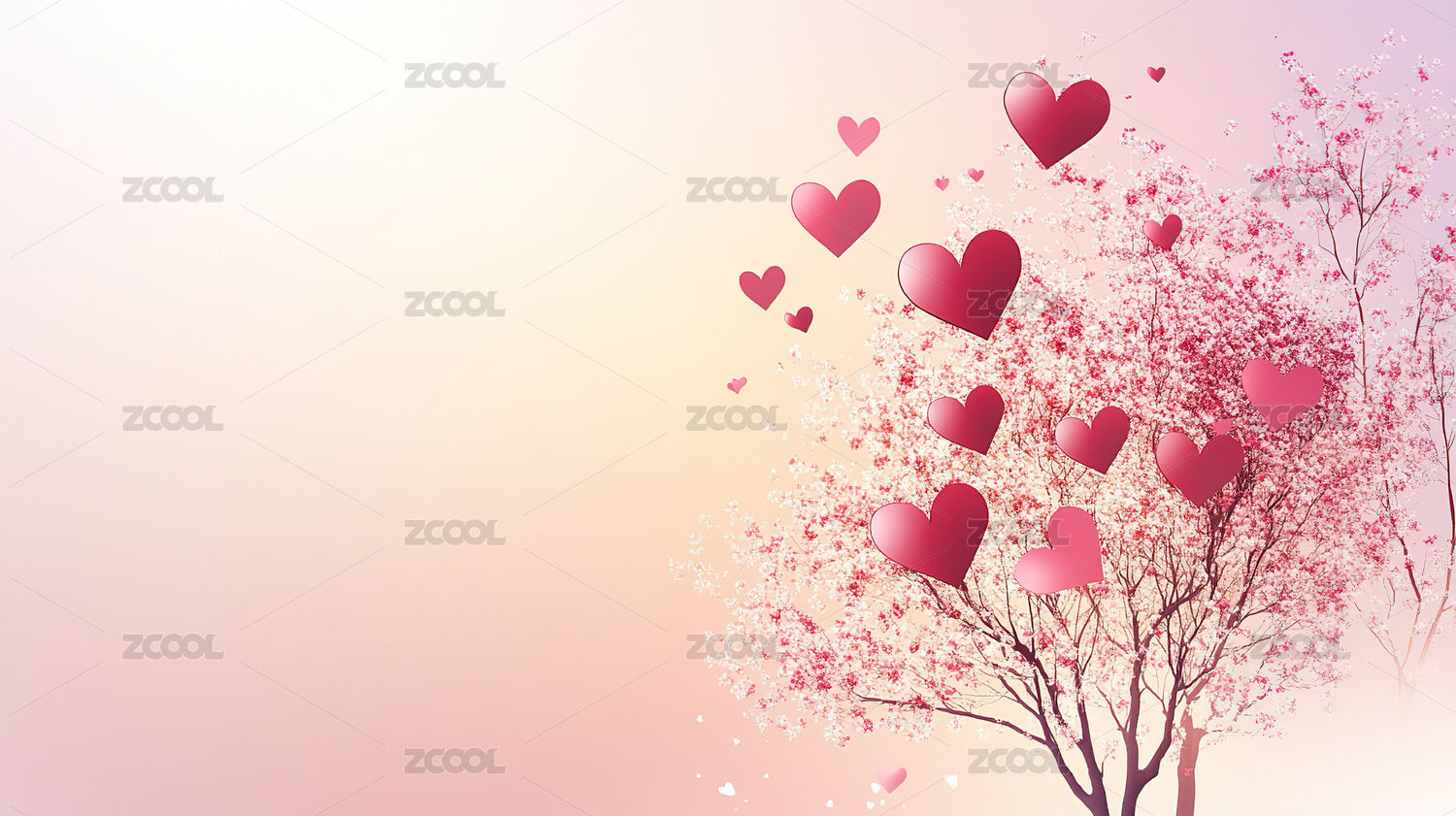 浪漫爱心树插画