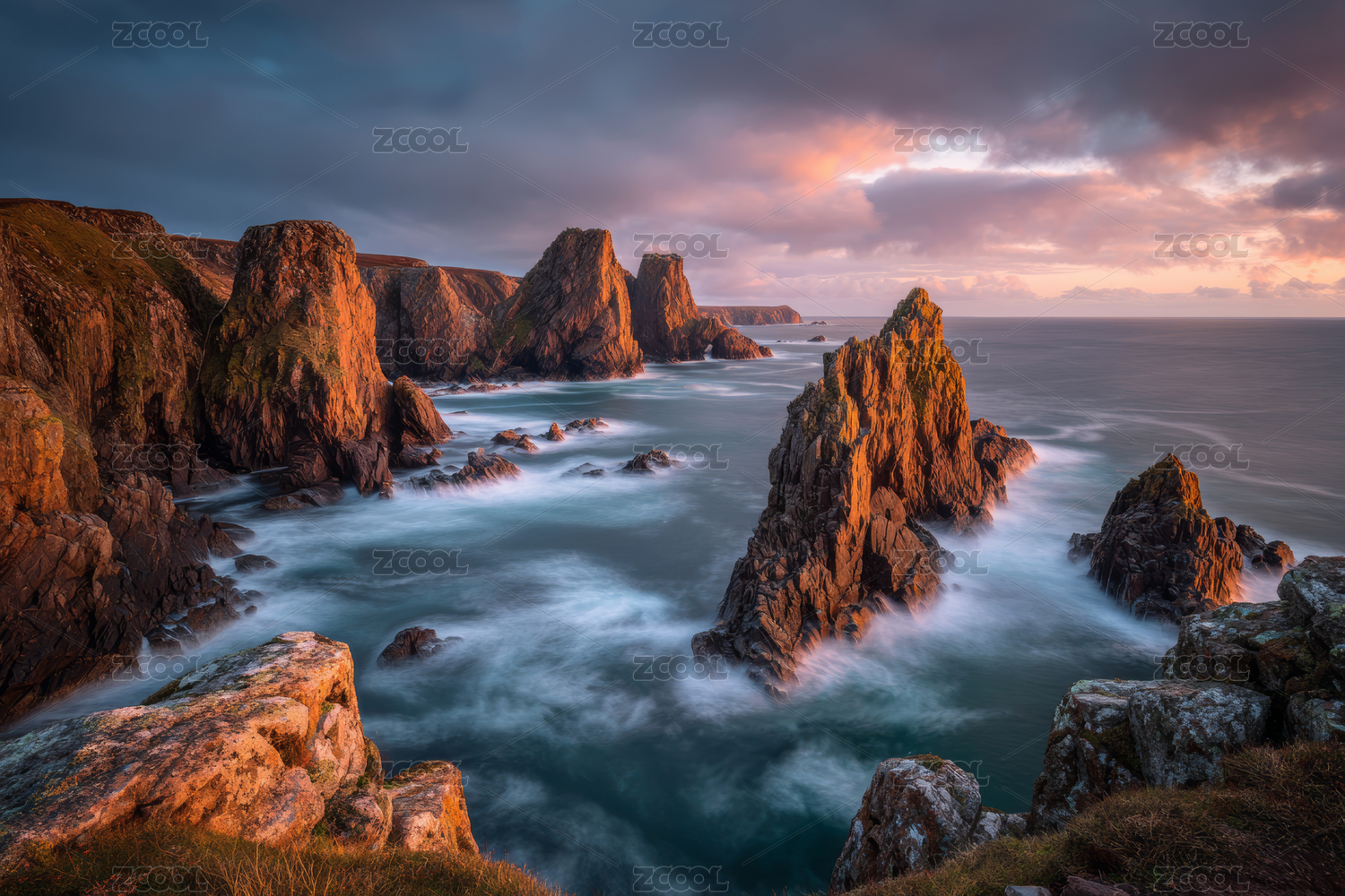 英国苏格兰天空岛内斯特角灯塔晚霞