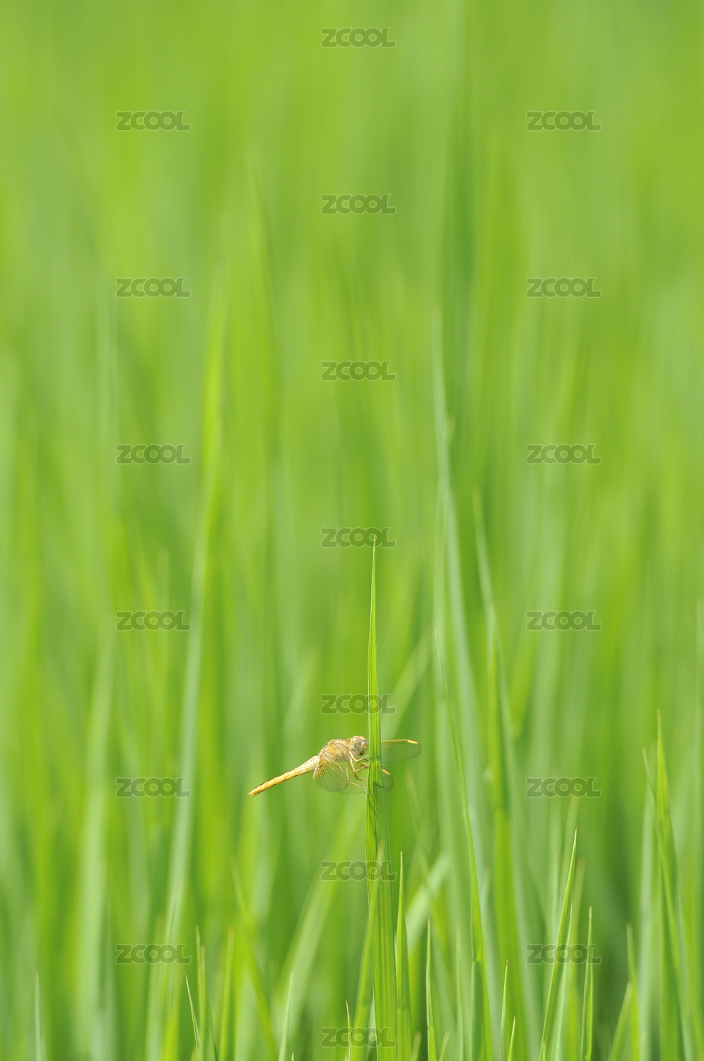 停在水稻叶子上的一只蜻蜓