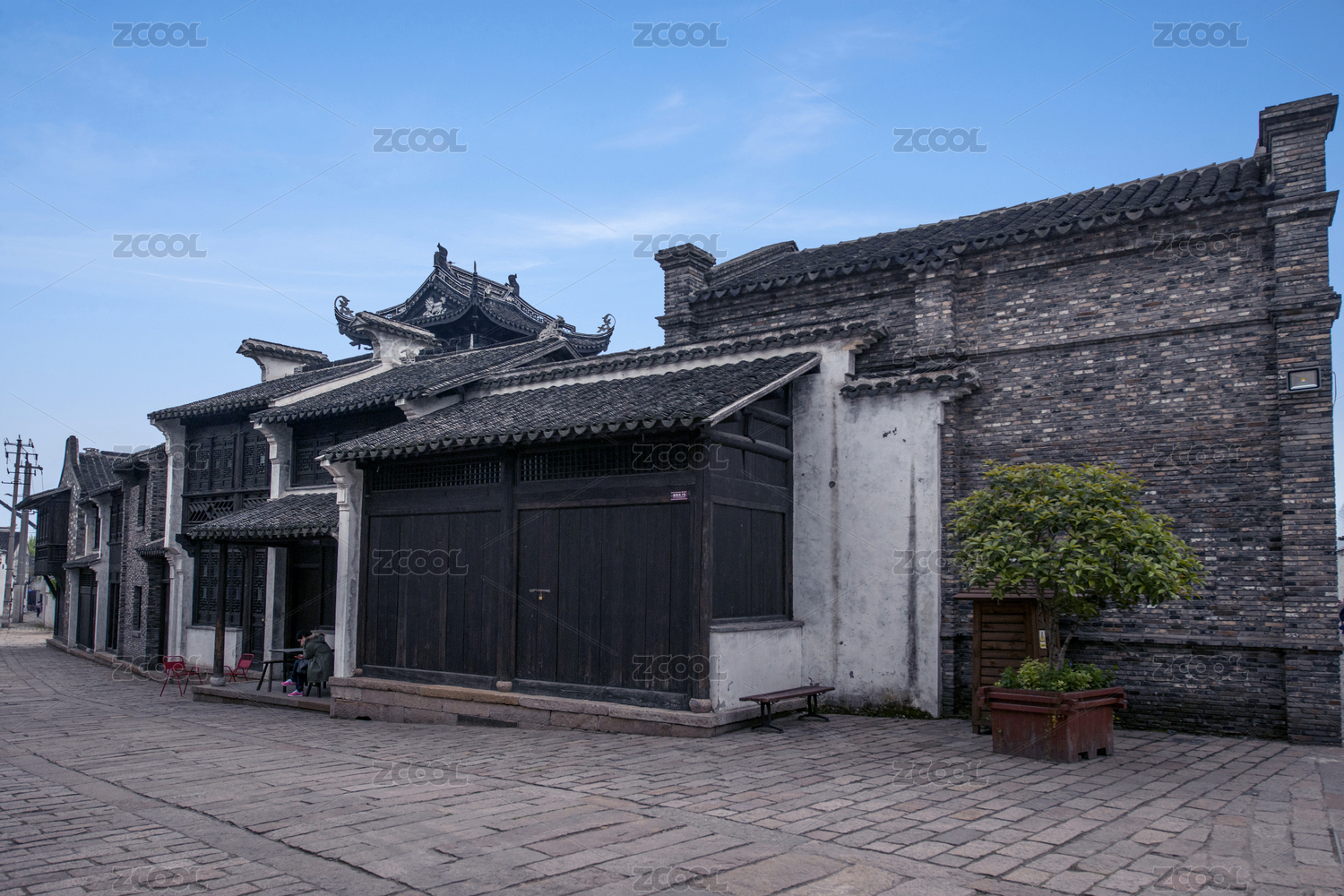 江南古镇仿古徽派建筑庭院马头墙