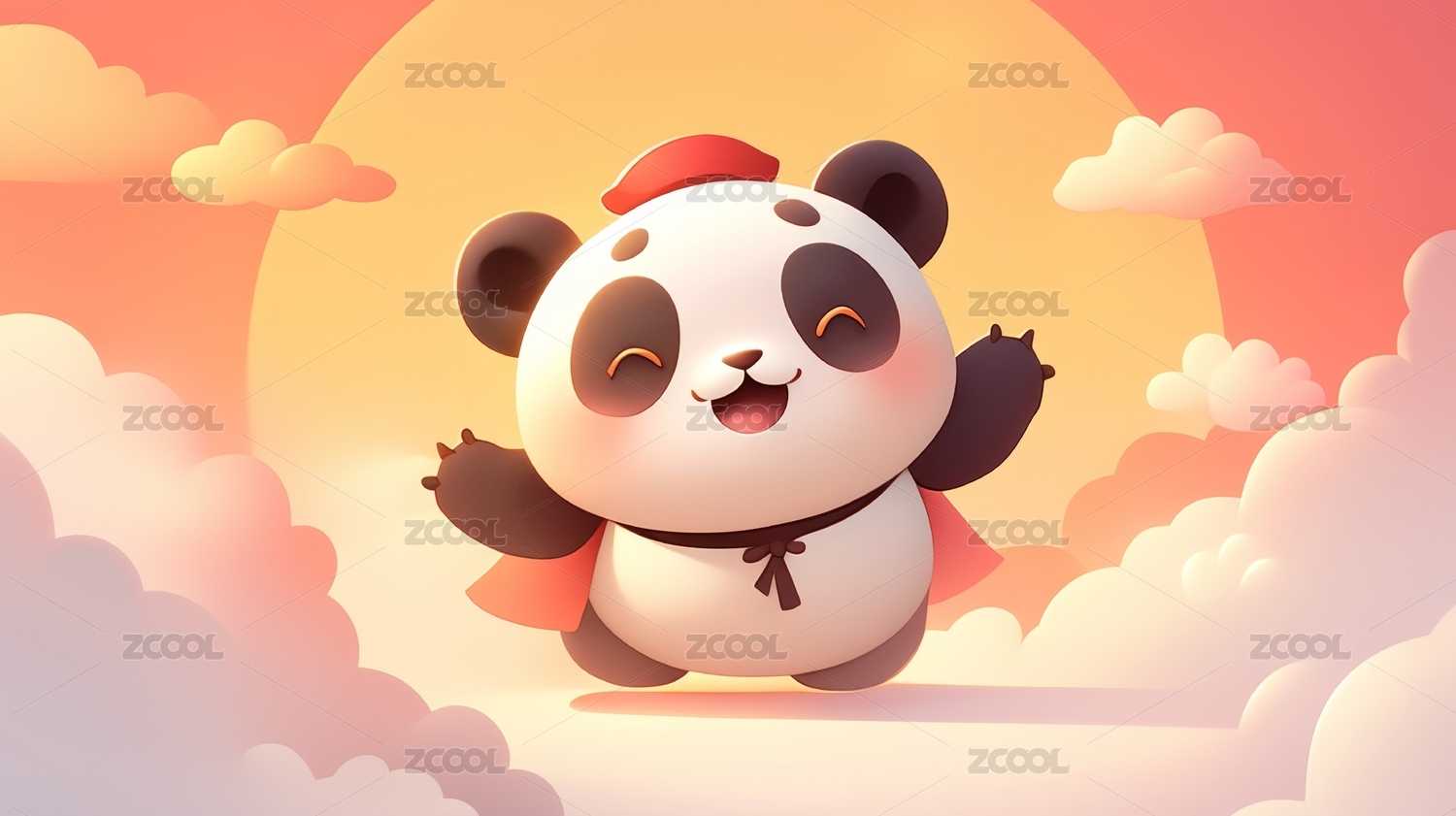 熊猫,卡通,动物,儿童,学生,书包,上学,快乐,教育,学习