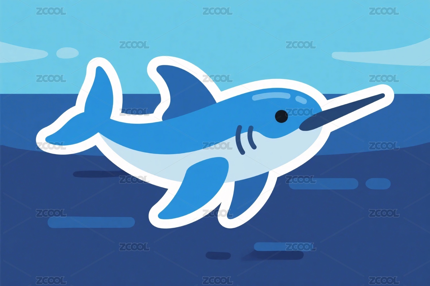 简笔手绘动物海豚卡通轮廓儿童生物知识素材