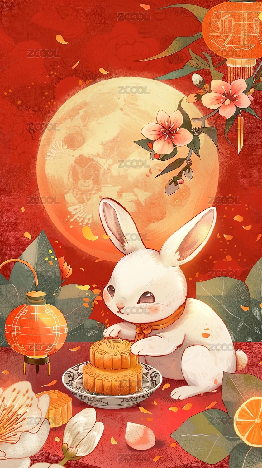 中秋快乐玉兔、月饼
