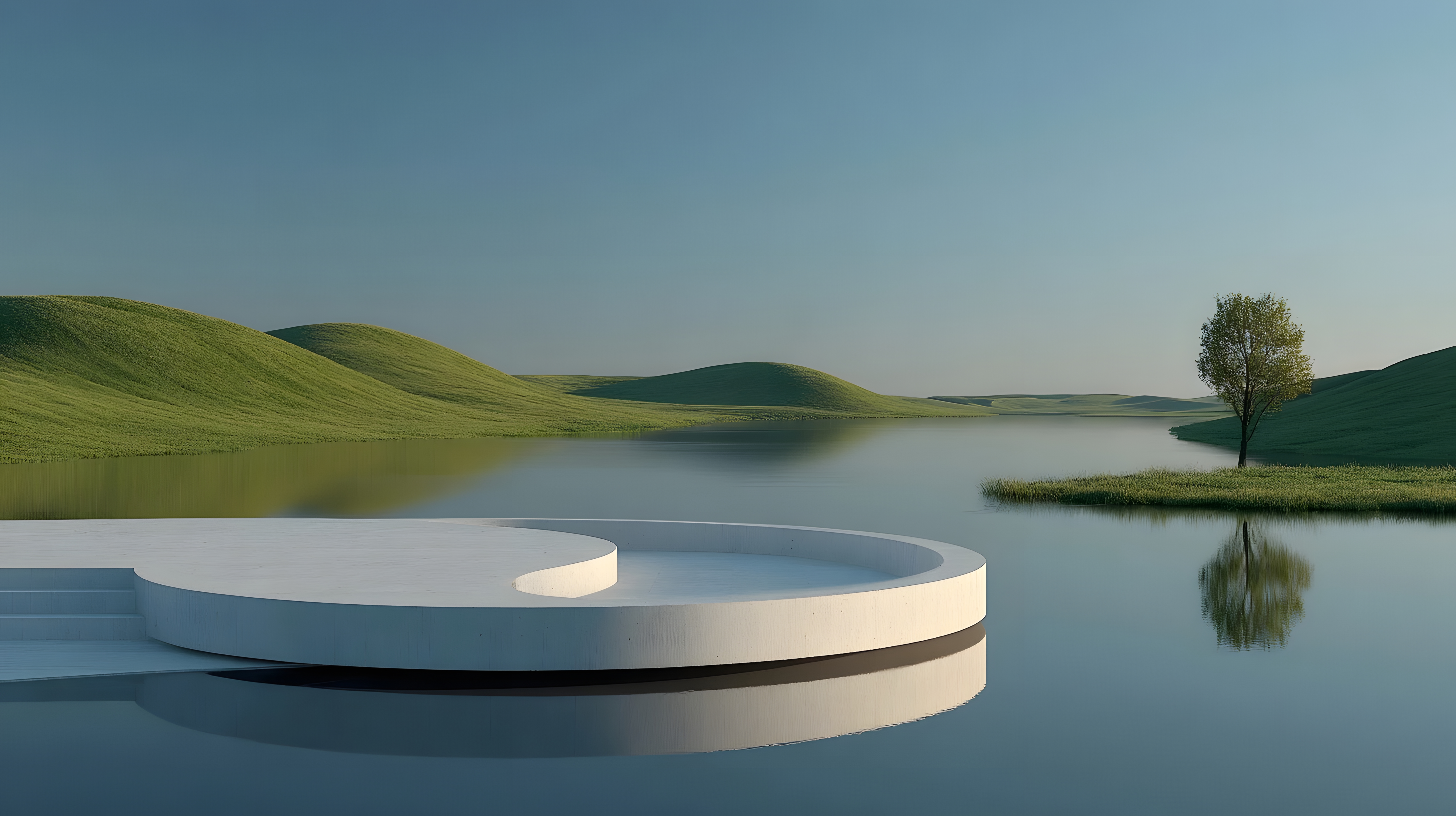 极简主义湖泊与草地