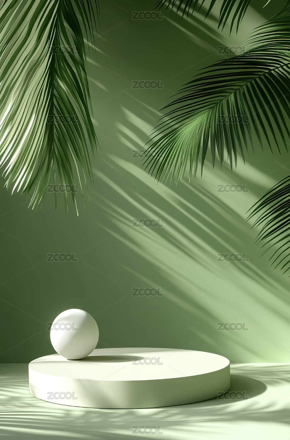 绿色背景下的棕榈叶特写镜头