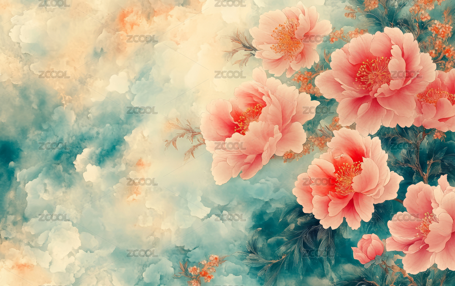 牡丹花卉艺术插画