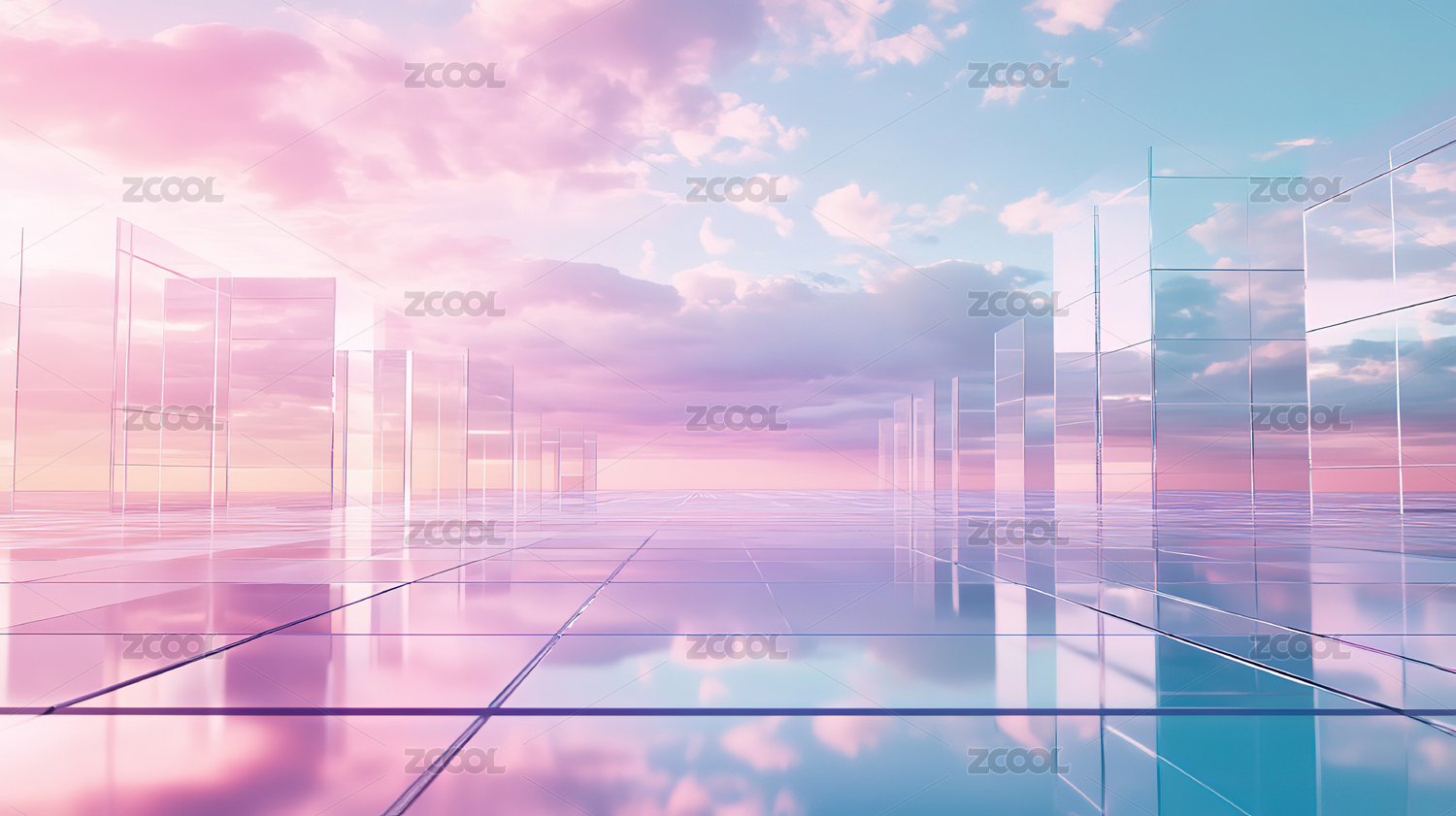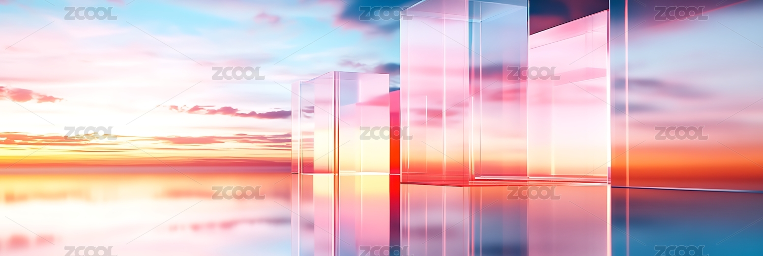 海面夕阳折射彩色玻璃方块