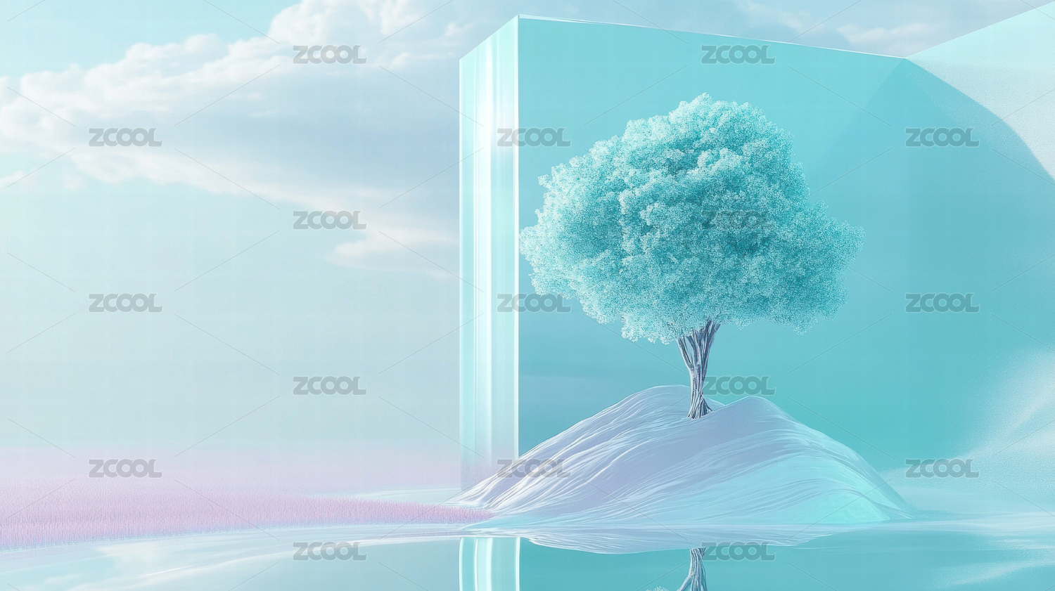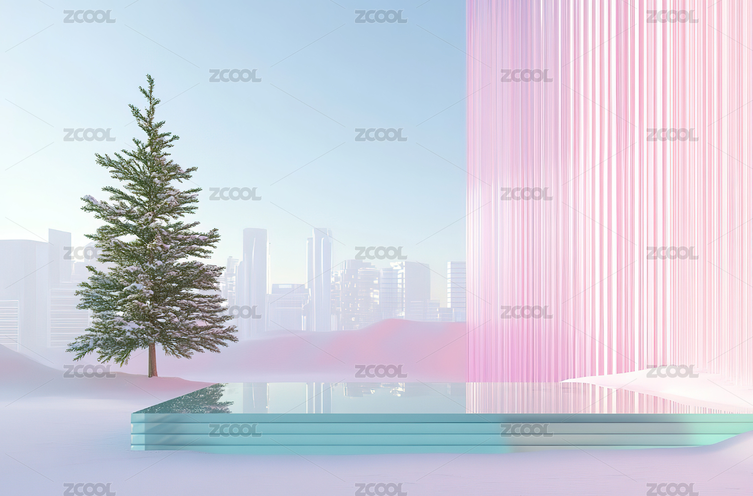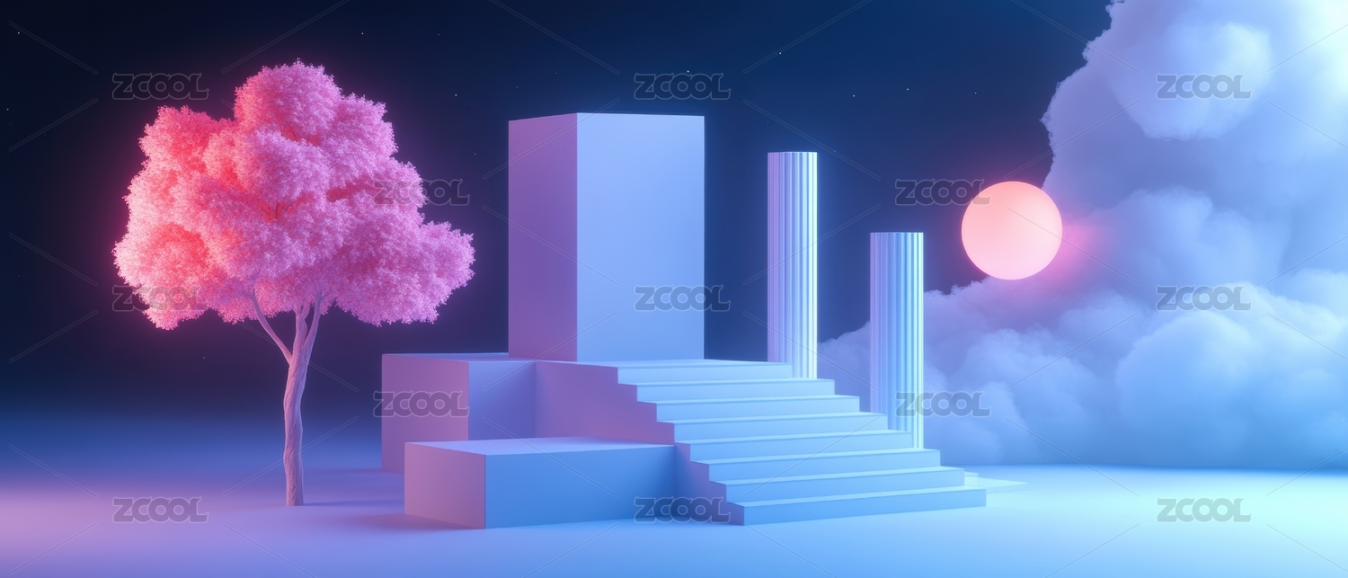 玻璃金属梦幻粉蓝渐变色展台底座背景-3D