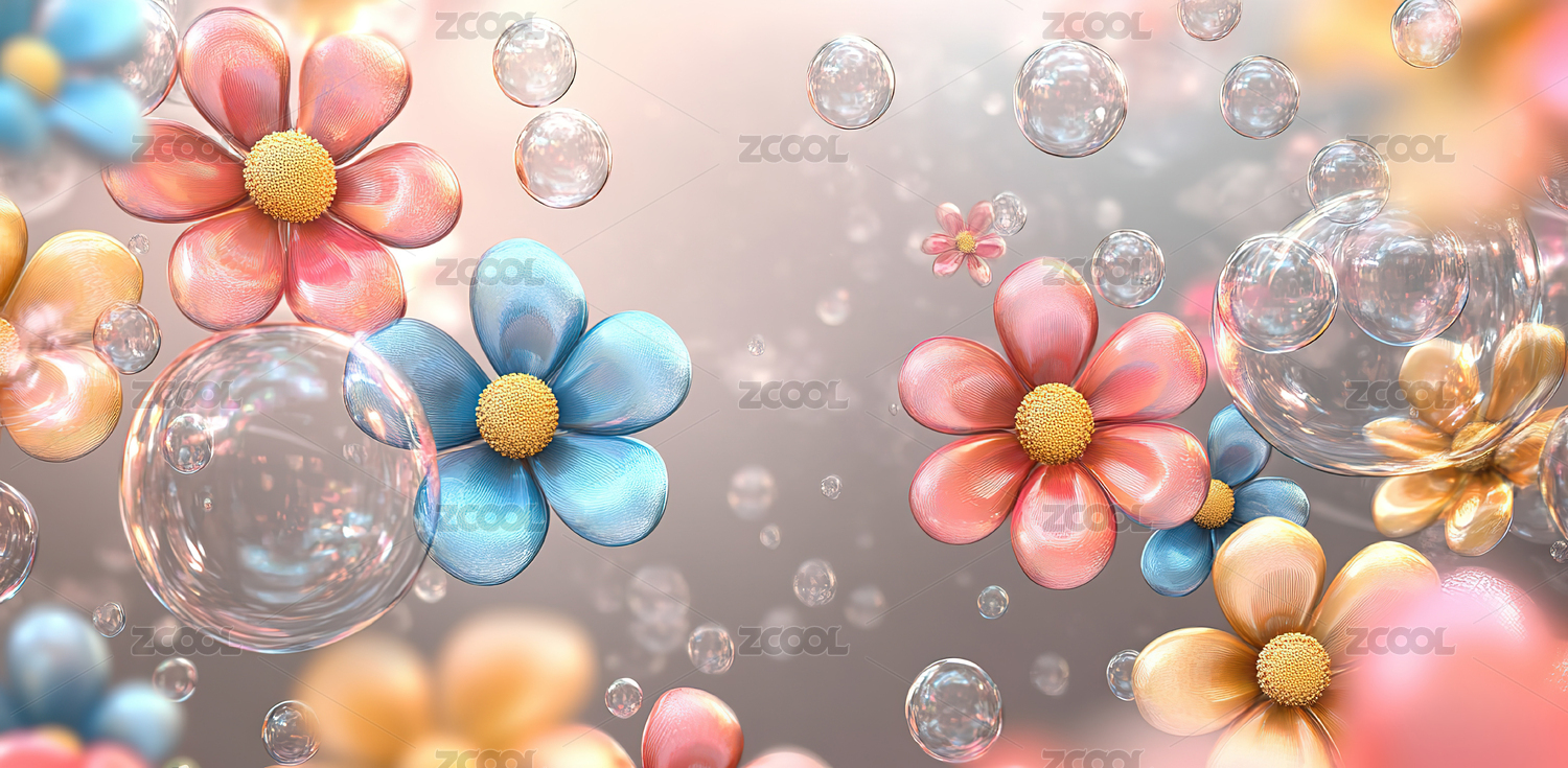 背景,AI数字艺术,插画,特写,蓝色,气泡,抽象,设计,三维图形,粉色