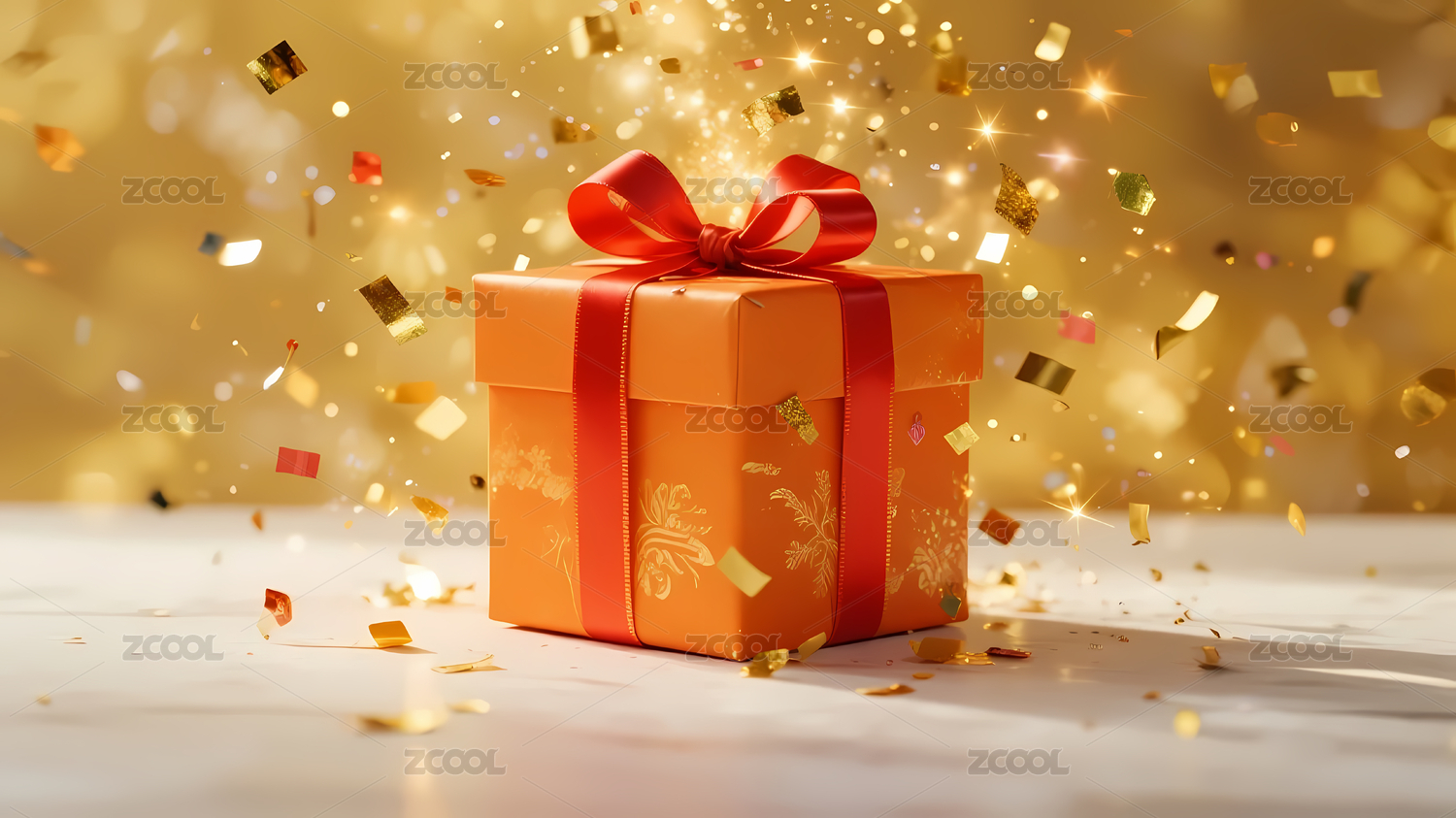 橙色礼盒金色蝴蝶结