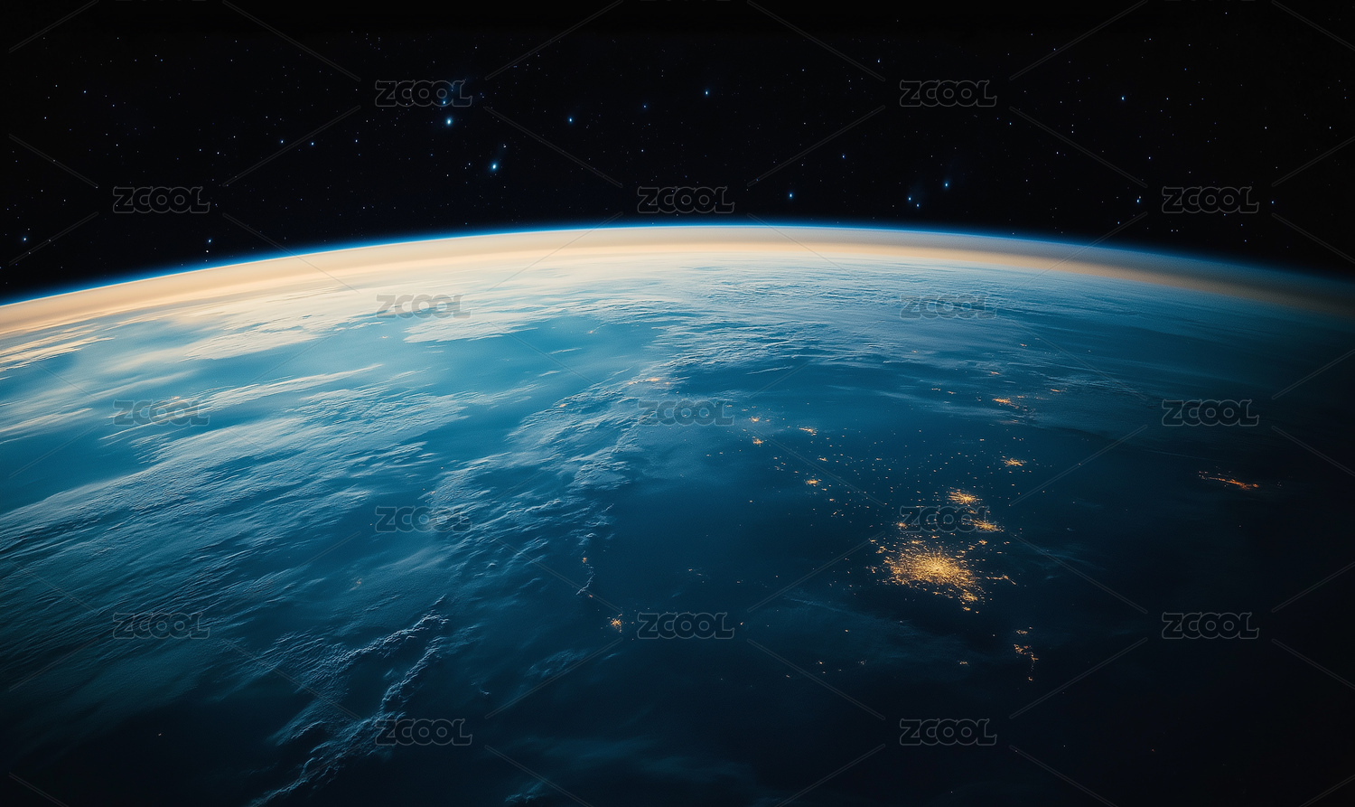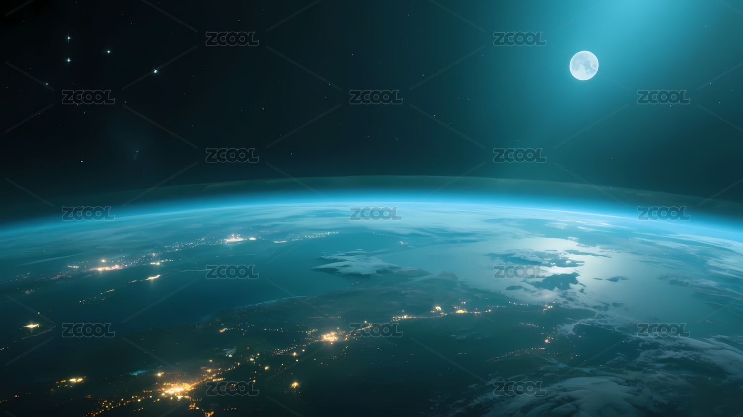 太空俯视地球美丽景象宇宙蓝色科技感背景