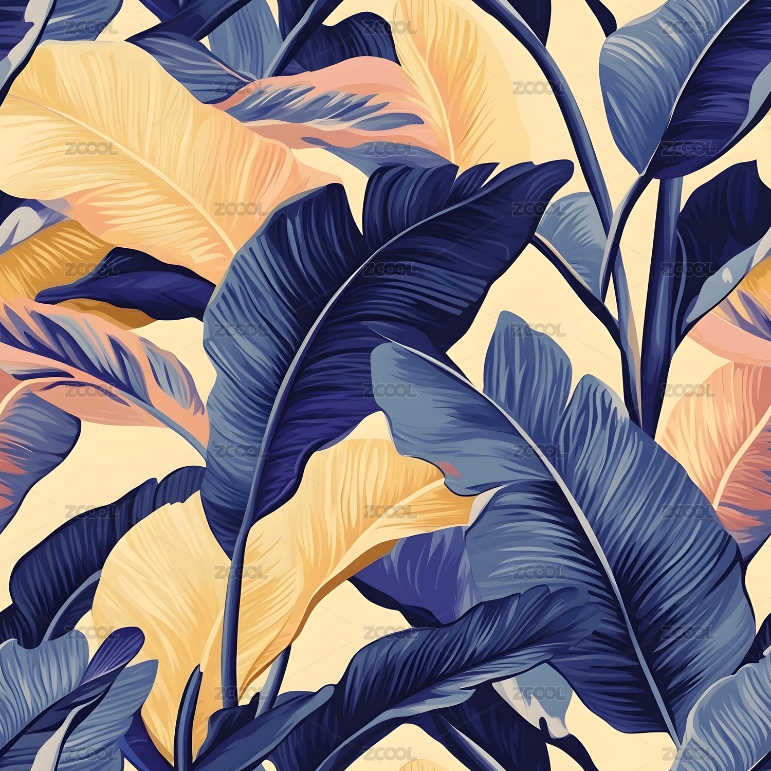 热带图案无缝纹理手绘妖怪叶子水彩效果