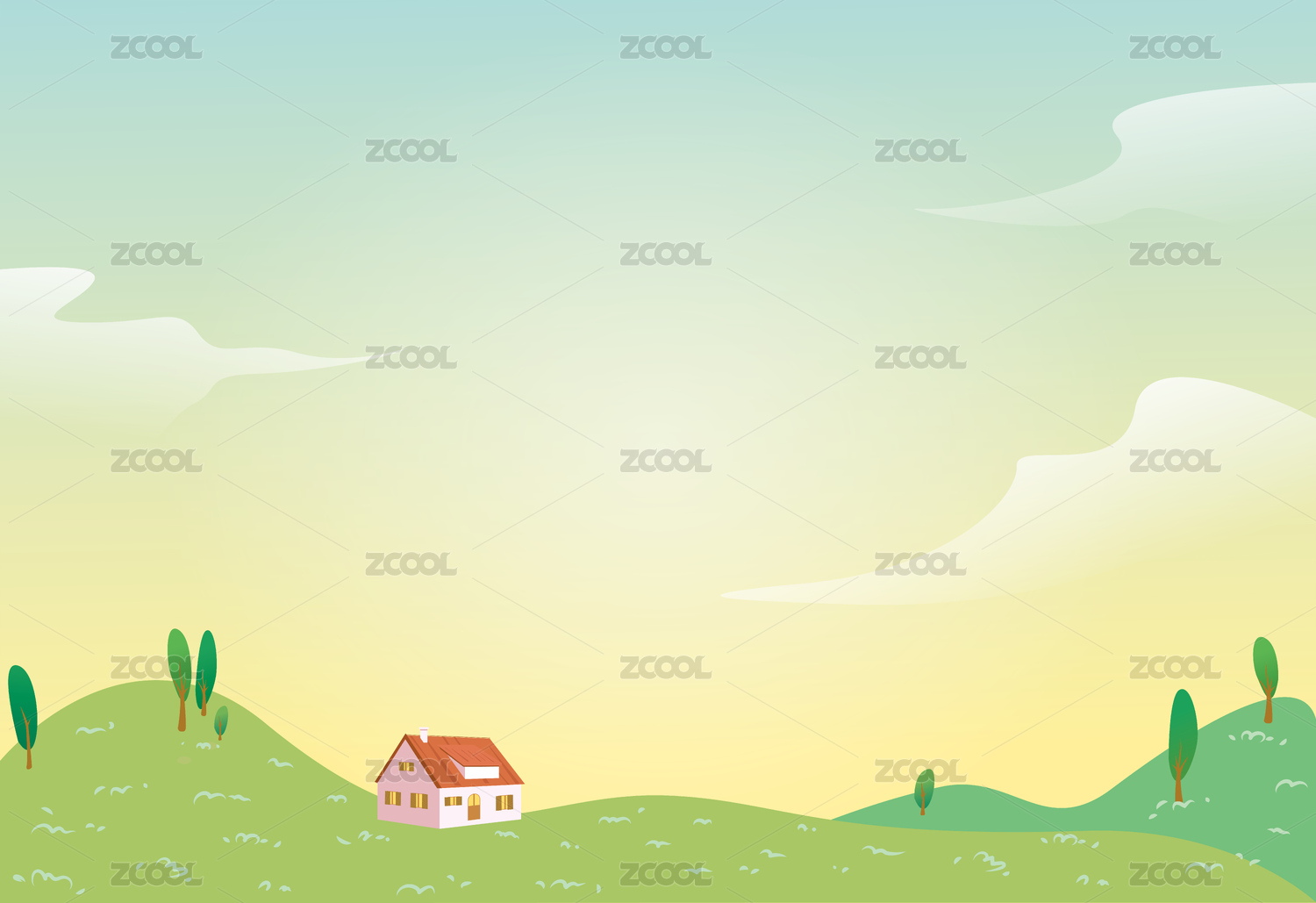 夏天户外旅行山峰房屋乡村风景夜晚发光插画