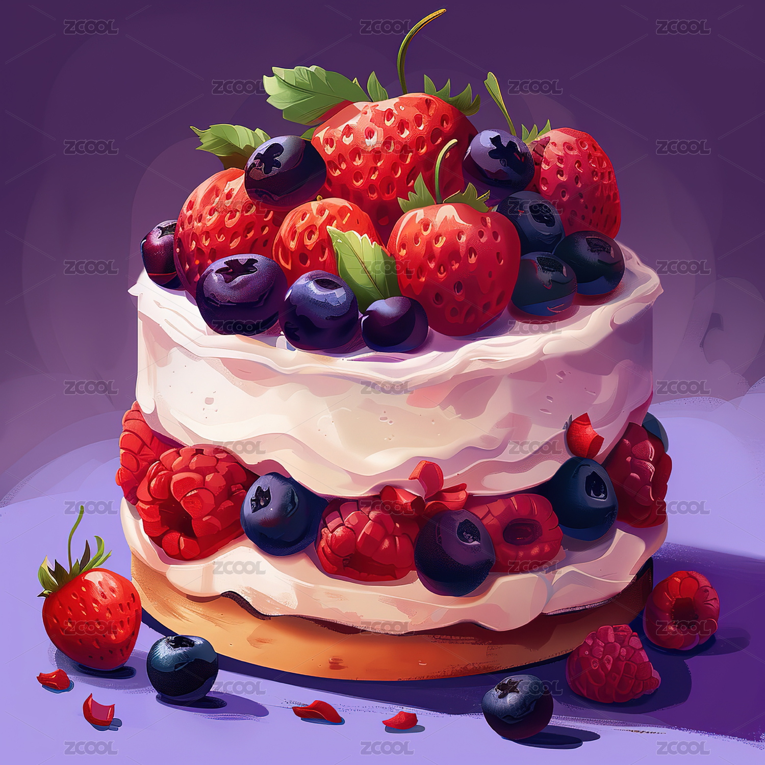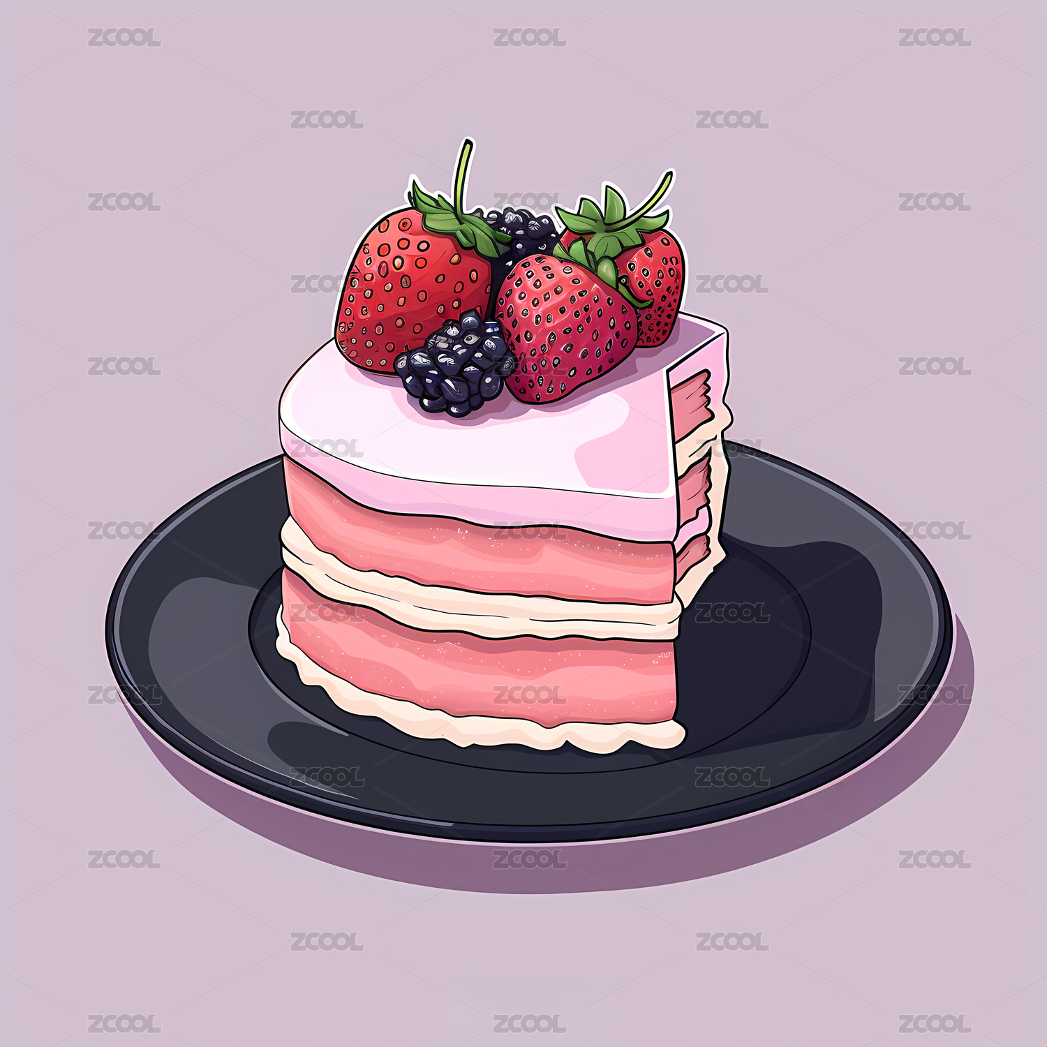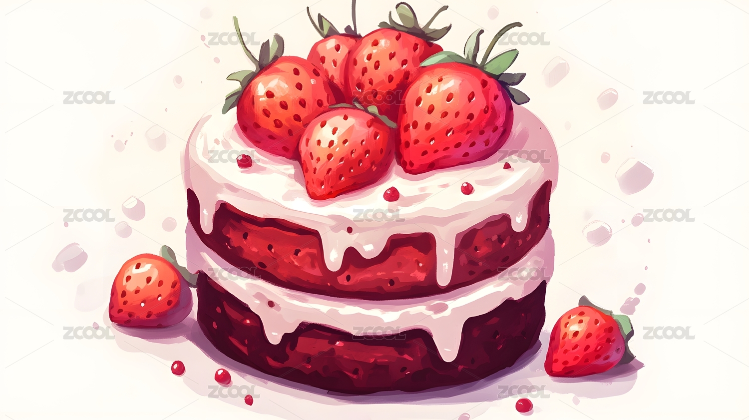 蛋糕,食品,甜品,奶油,插画,纯色,背景,手绘,水果,草莓