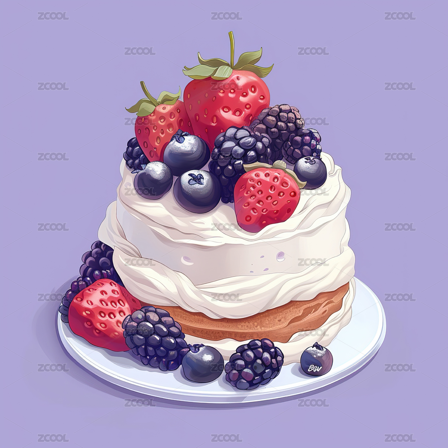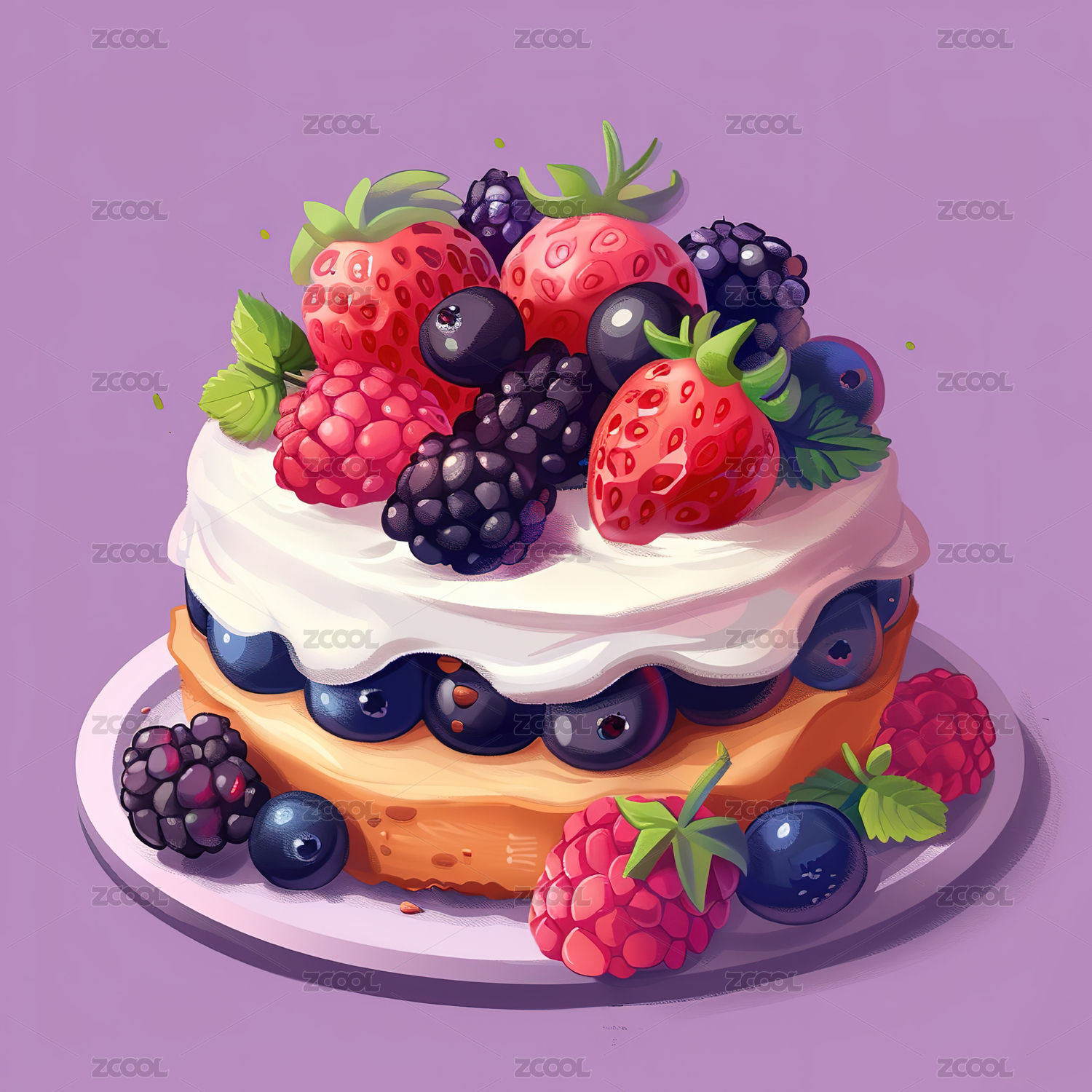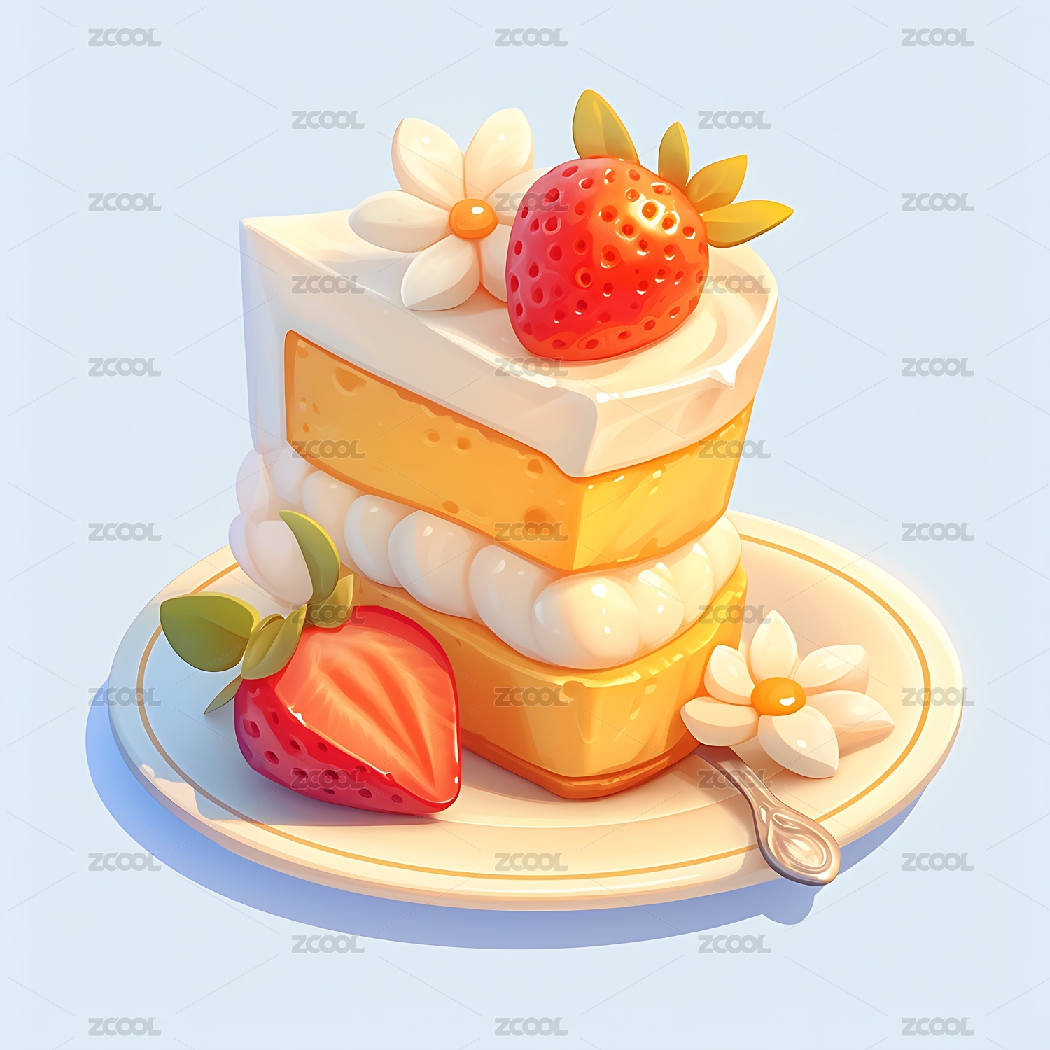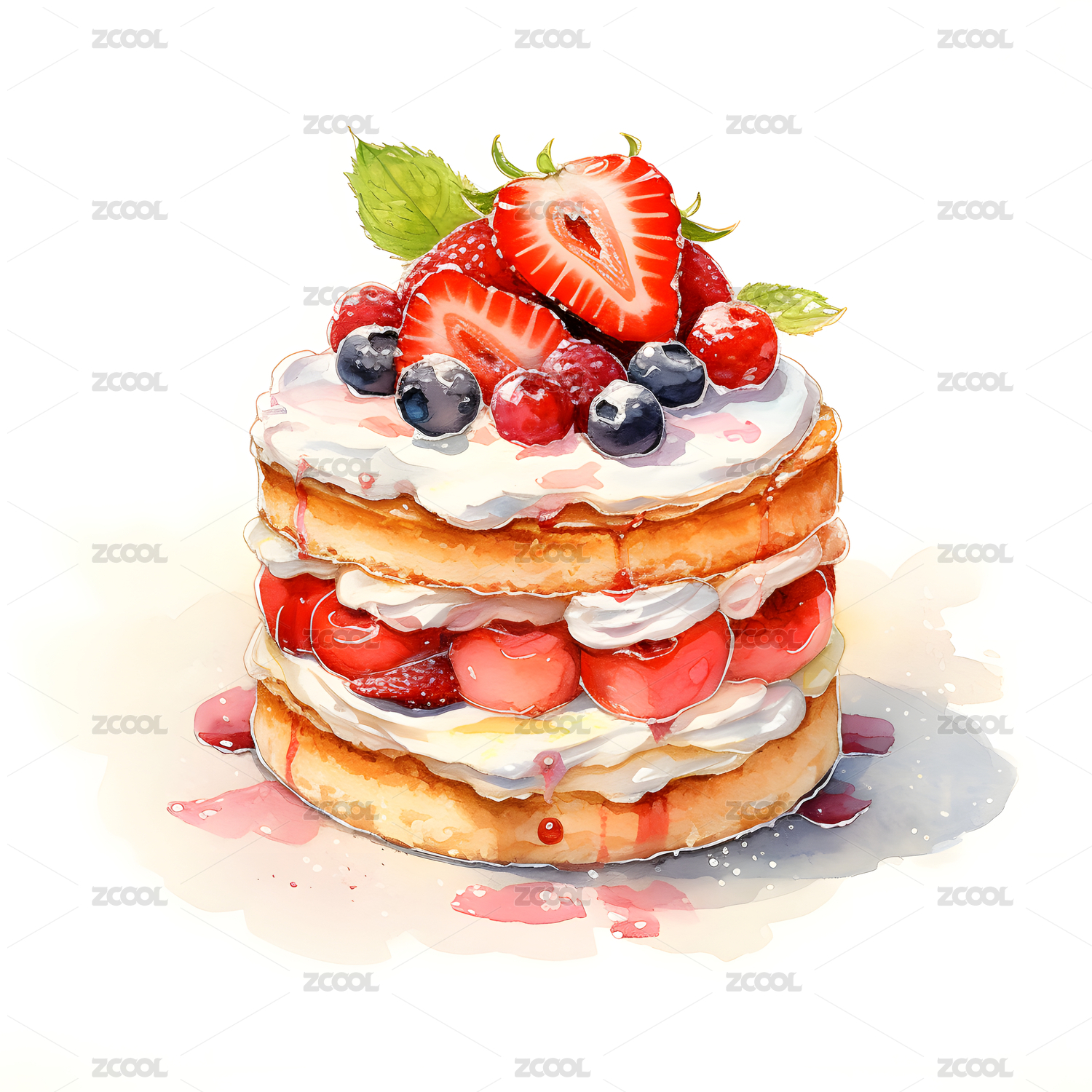 蛋糕,食品,甜品,奶油,插画,纯色,背景,手绘,水果,草莓