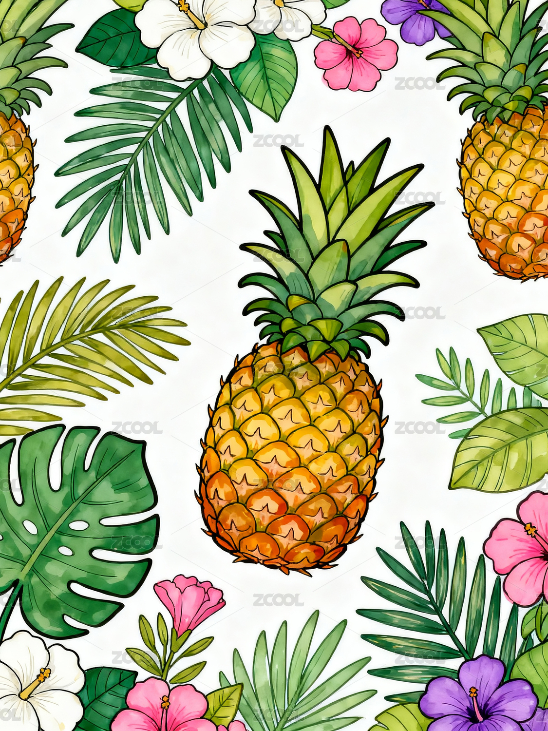 菠萝花卉绿叶构成