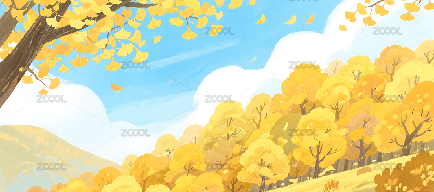秋天,秋季,金色,晴天,白天,背景,卡通,插画,季节,手绘