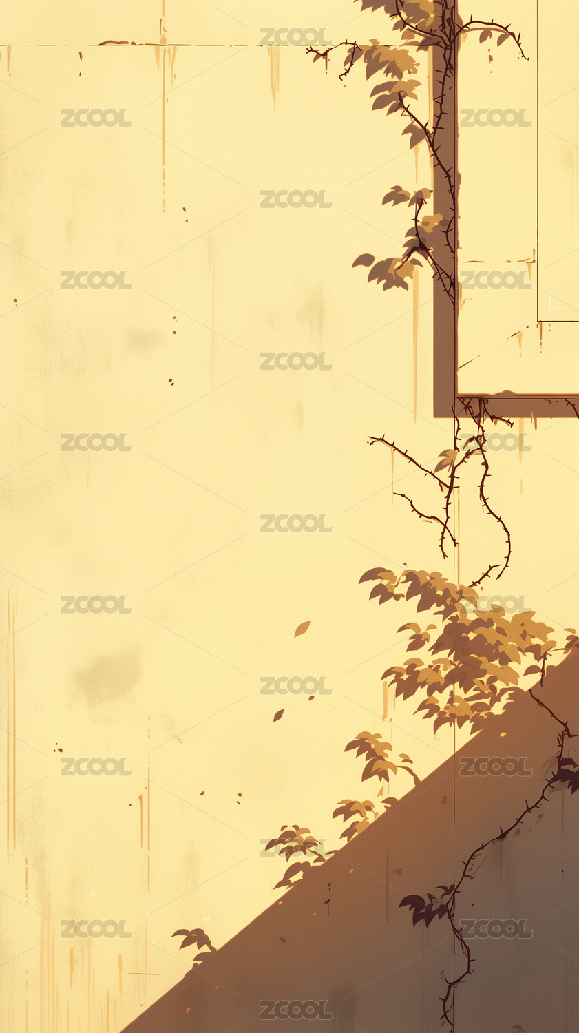 阳光下墙面缝隙的针状荆棘藤蔓插画背景场景