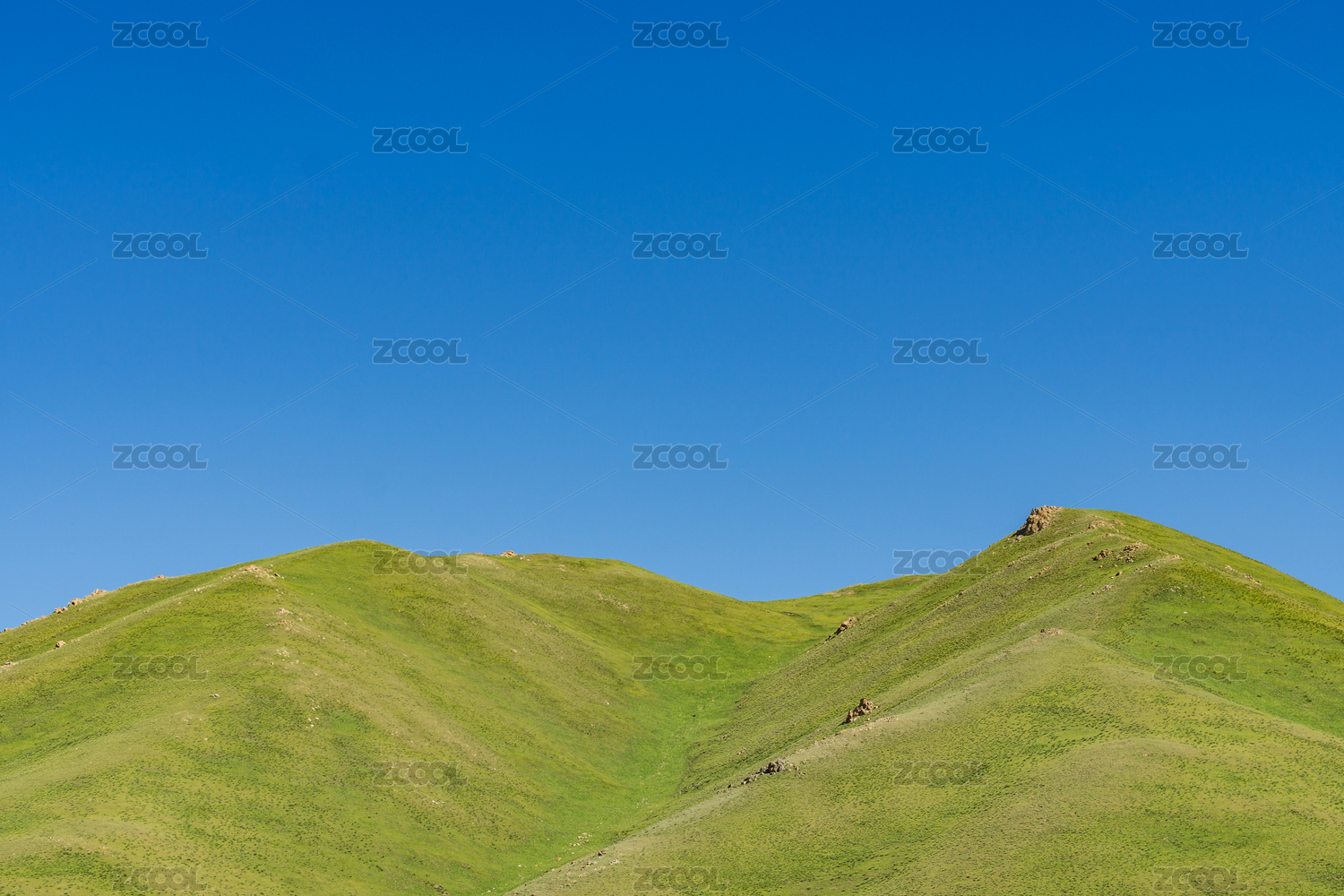 中国新疆夏季蓝天白云下G217独库公路沿途高山草原