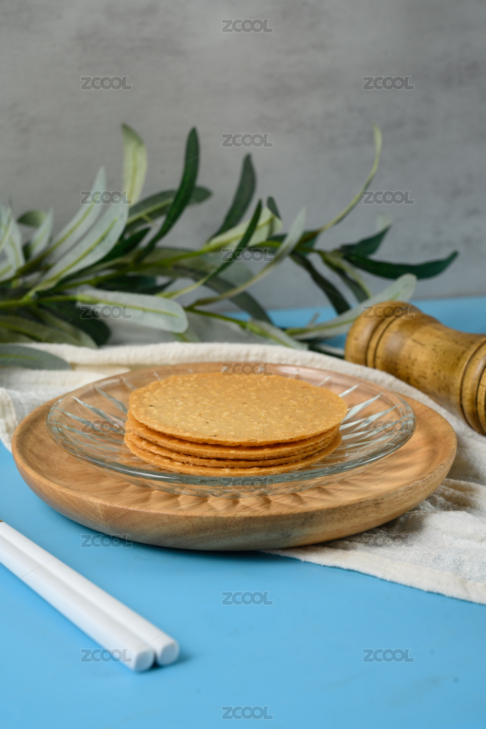 桌面上的盘子里的美味可口的山药芝麻脆饼