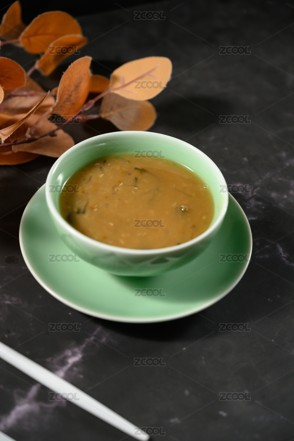 桌面上的碗里的美味可口的海带绿豆沙
